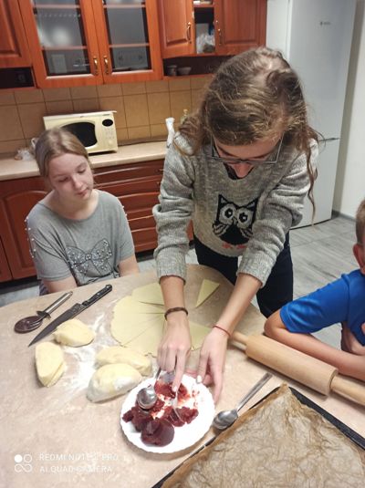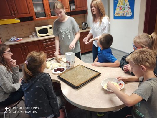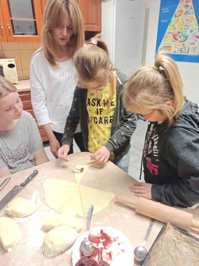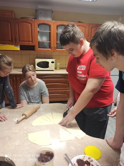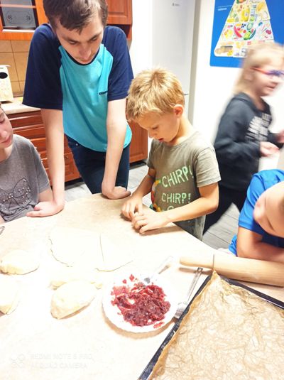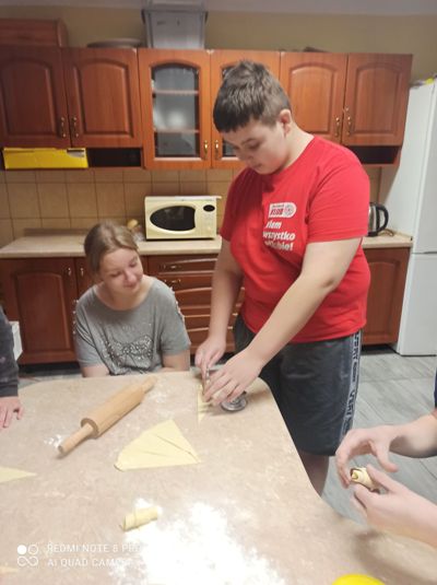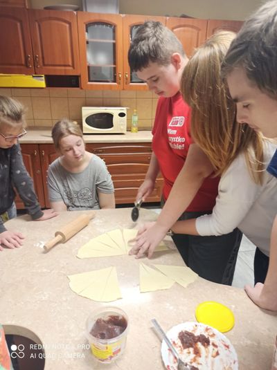 Często mówi się, że kuchnia jest sercem domu... i coś w tym jest 19 października wychowankowie dwóch grup wychowawczych I i III w ramach zajęć kulinarnych poznali nowy przepis, tym razem jak zrobić pyszne rogaliki nadziewane konfiturą. Uczestnicy zajęć doskonalili umiejetność właściwego przygotowywania ciasta, dbając tym samym o narzędzia i sprzęt kuchenny. Wdrażali się do bezpiecznej i higienicznej pracy, segregowali odpady. Stosowali zasady zachowania się przy stole, a co najważniejsze spędzali ze sobą aktywnie czas, poznajac się i ucząc pracy w grupie.