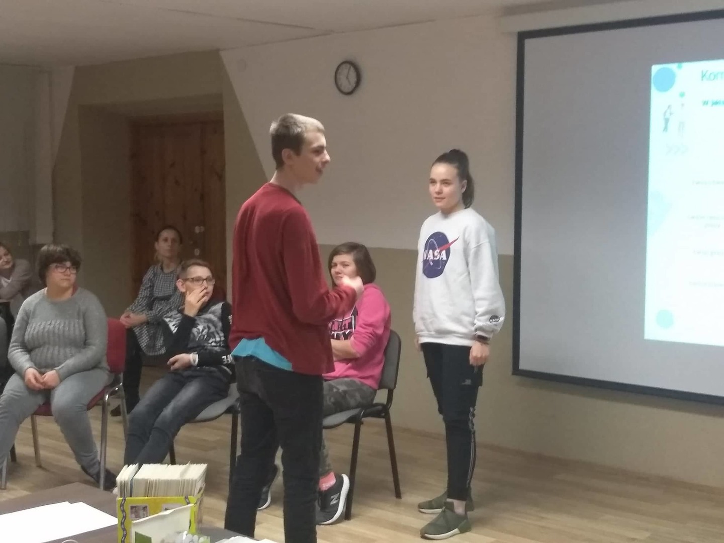 Komunikowanie słowne lub bezsłowne jest bardzo istotne w przesyłaniu informacji i kształtowaniu relacji między ludźmi. Umiejętności komunikowania się określają stosunki między ludźmi i wpływają one na poczucie własnej wartości. Brak takich umiejętności może prowadzić do samotności i poczucia bezsilności, niezadowolenia z pracy oraz rozczarowań w życiu osobistym. Otwarta komunikacja wzmacnia relacje z ludźmi. Swobodność w komunikowaniu się pomaga w lepszym poznaniu poglądów innych i wspiera rozwój procesów decyzyjnych. W celu poprawy prawidłowej komunikacji wychowankowie grup wychowawczych uczestniczyli w zajęcia dotyczących komunikacji. Celem tych zajęć było kształtowanie umiejętności komunikacyjnych, poznanie sposobów porozumiewania się, nabycie cech dobrego słuchacza, poznanie różnic pomiędzy komunikacją werbalną, a niewerbalną odczytywanie i rozpoznawanie tzw. mowy ciała, zdobycie wiedzy na temat skutecznej i nieskutecznej komunikacji; uświadomienie możliwości zniekształcenia informacji; uświadomienie znaczenia niewerbalnego porozumiewania się, nabycie umiejętności posługiwaniem się komunikatem typu „Ja” i typu „Ty”.
