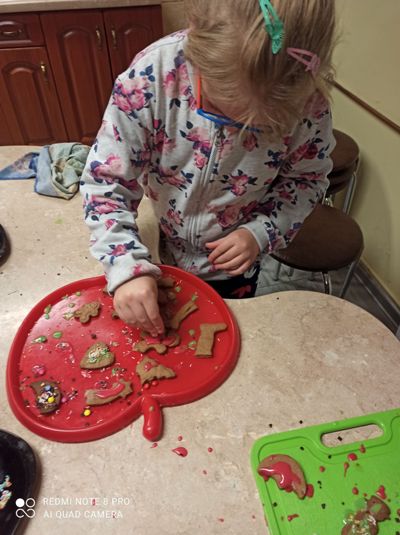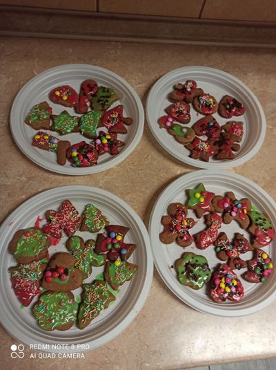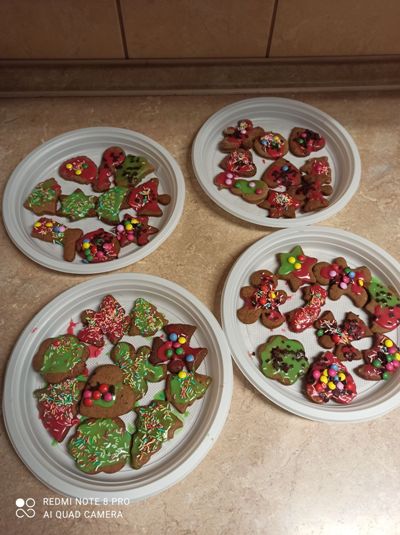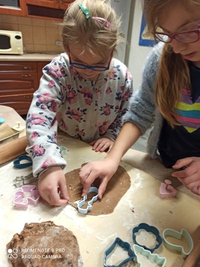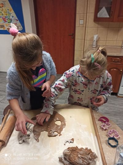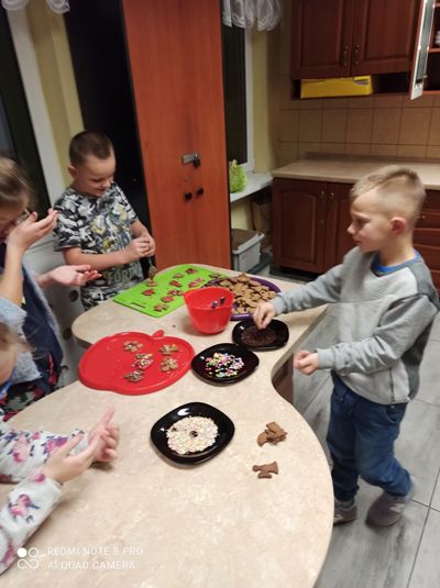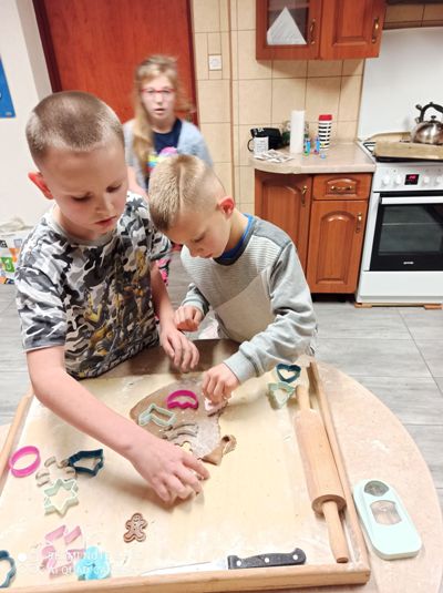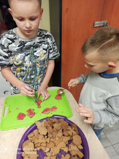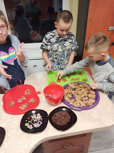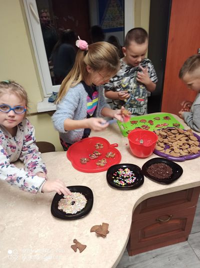 We wtorkowe popołudnie, za sprawą wychowanków grupy I, pracownia kulinarna zamieniła się w fabrykę pierniczków. Dziewczynki i chłopcy z precyzją odmierzyli składniki, wyrobili i wałkowali ciasto, a przede wszystkimi wyczarowali wspaniałe piernikowe kształt. Następnie rozwijali kreatywność i wyobraźnię dekorując ciasteczka według własnych pomysłów. Zajęcia kulinarne, których celem było kultywowanie tradycji bożonarodzeniowych, ćwiczenie sprawności manualnej oraz integracja grupy były okazją do wspanialej zabawy zakończonej degustacją słodkości. Pieczenie pierniczków polecamy wszystkim.