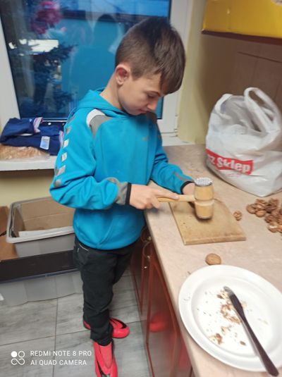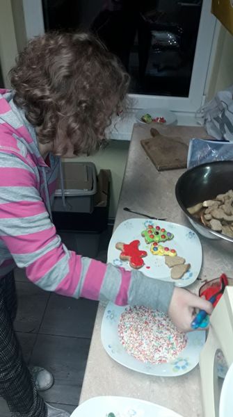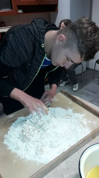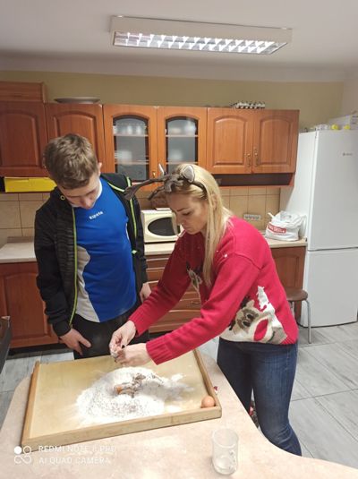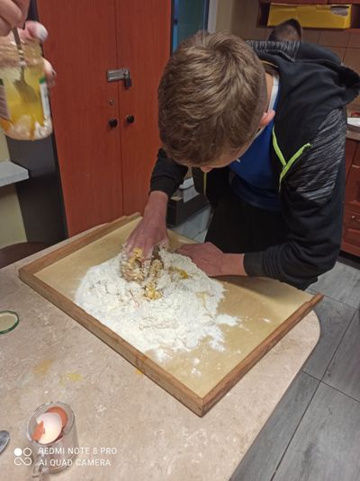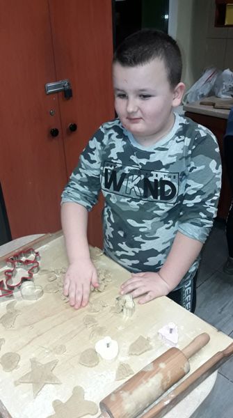 Grudzień to okres przedświąteczny, który nierozerwalnie łączy się z zapachem pieczonych pierniczków. Wychowankowie grupy II, V, VII postanowili trochę tego magicznego, świątecznego zapachu wnieść do internatu. W dniu 8 grudnia 2020 roku w grupach wychowawczych miało miejsce wielkie pieczenie świątecznych pierników przez wychowanków. W miłej (i nieco gwarnej) atmosferze uczniowie przygotowali ciasto na pierniki, podzielili się na grupy odpowiedzialne za poszczególne zadania: wałkowanie ciasta, wycinanie pierników foremkamii układanie na blaszkach, wkładanie pierników do piekarnika, pilnowanie czasu pieczenia. Ta kulinarna zabawa zaowocowała również nawiązaniem koleżeńskich relacji między wychowankami. Dzieci z zajęć wychodziły bardzo zadowolone, ponieważ jeszcze przed Świętami Bożego Narodzenia, miały okazję praktycznej nauki pieczenia pysznych pierników. Po ostygnięciu ciasteczek wszyscy zabrali się za dekorowanie. Pomysłów na najpiękniej udekorowany piernik było wiele.