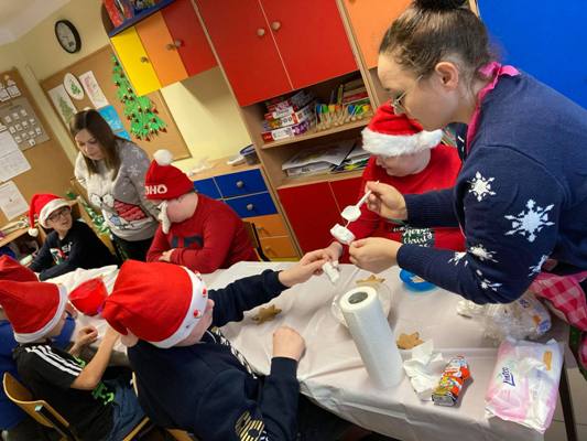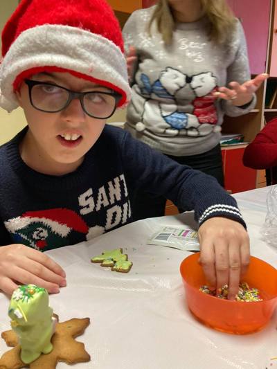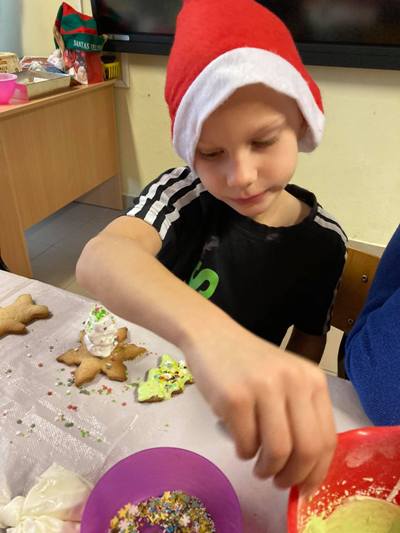 Najmłodsi uczniowie naszej szkoły wzięli udział w warsztatach kulinarnych pod hasłem „Piernikowe cuda”. W tym roku tematem przewodnim spotkań były piernikowe bałwanki. Grupa uczniów dzielnie przygotowała piernikowe ciasto, a następnie wałkowali wycinali i układali na blaszkach piernikowe ciasteczka. Następnie wspólnie ozdabiali wypieczone słodkości kolorowymi lukrami i posypkami. Podczas spotkania panowała miła i już świąteczna atmosfera. Piernikowe cudeńka, które powstały w trakcie warsztatów udekorują nasze świąteczne stoły.