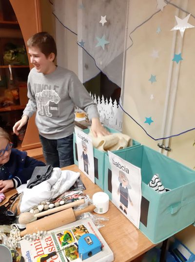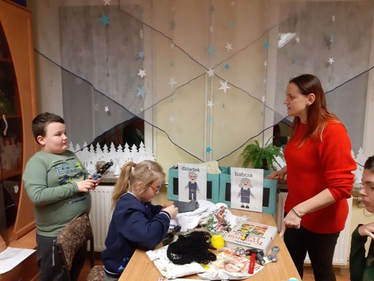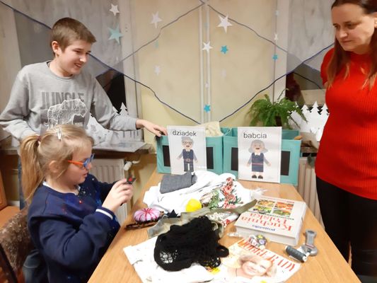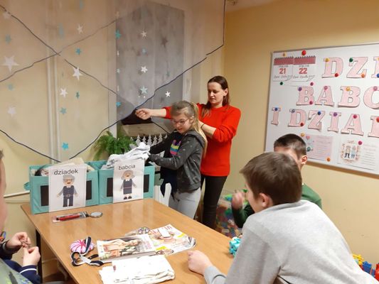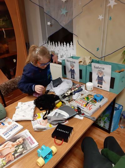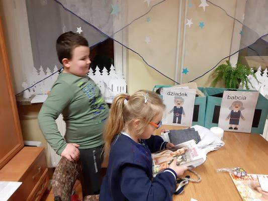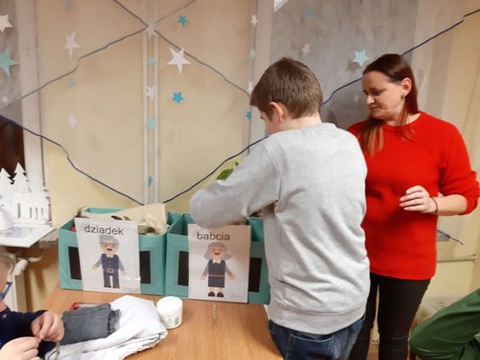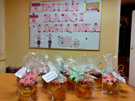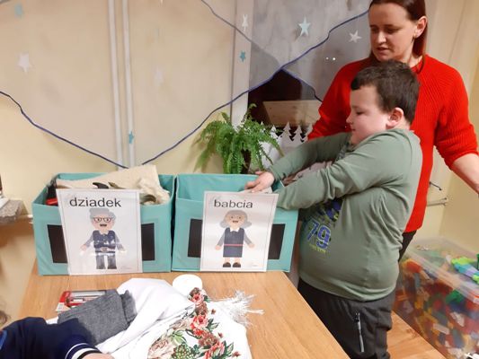 W dniach 19 i 20 stycznia 2021 roku wychowankowie z grup I i II uczestniczyli w zajęciach poświęconych zbliżającym się obchodom święta Dnia Babci i Dziadka. Celem zajęć było wzmocnienie więzi rodzinnych, aktywizowanie wyobraźni dzieci - segregowanie i nazywanie przedmiotów należących do Babci i Dziadka oraz wkładanie do oznaczonych pudelek. Wychowankowie wykonali "Słoiczki mocy", które ozdobnie zapakowali i przekazali swoim Babciom i Dziadkom.