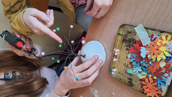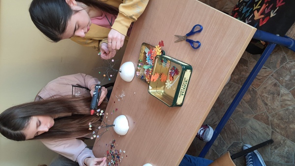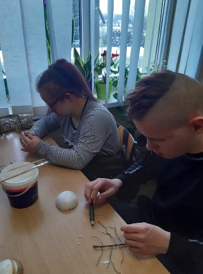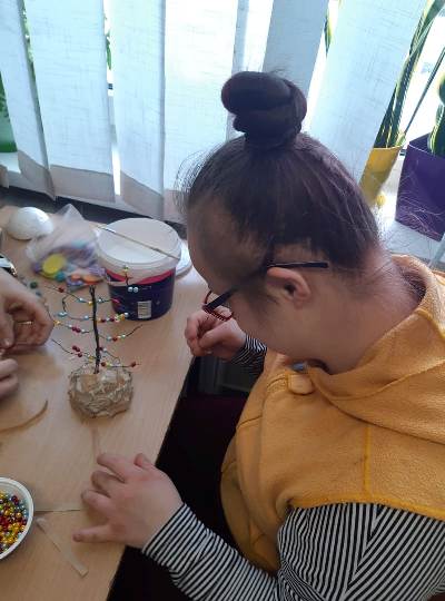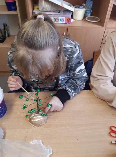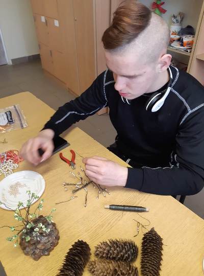 Uczniowie Szkoły Przysposabiającej do Pracy w ramach zajęć rozwijających kreatywność – zajęcia florystyczne wykonali "drzewka szczęścia". W pracy wykorzystali druciki florystyczne, które są niezwykle plastyczne i dają duże możliwości modelowania i formowania. Gotowe drzewka ozdobili przy pomocy kolorowych cekinów, mchu, kawałków rozbitej bombki oraz łusek szyszki. Dzięki udziałowi w zajęciach uczniowie poznali różne sposoby łączenia materiałów jakim jest metal, plastik, szkło. Tego typu zajęcia to również swego rodzaju terapia, uczniowie ćwiczą precyzyjne ruchy ręki, koncentrację uwagi, ale rozwijają swoją kreatywność, pomysłowość.