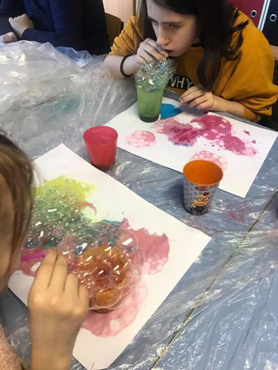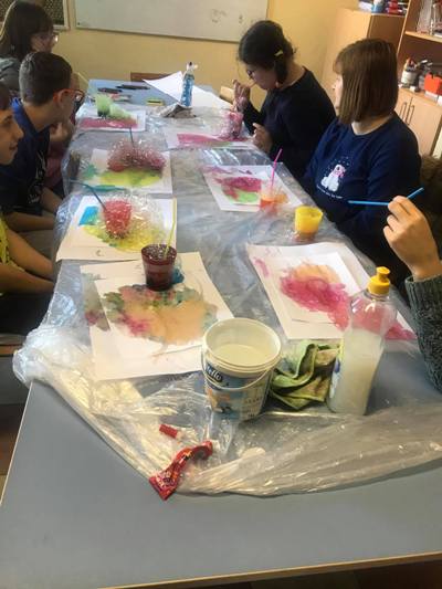 Malowanie farbami to wspaniała zabawa i twórcze zajęcie dla dzieci. Nasi uczniowie uwielbiają prace plastyczne z wykorzystaniem farb. Malowanie farbami to nie tylko miła forma spędzania czasu, ale przede wszystkim jest to barwna aktywność, która rozwija kreatywność, wyobraźnię, zdolności manualne, motorykę małą, a nawet może być świetnym ćwiczeniem integracji sensorycznej. W naszej świetlicy uczniowie do tworzenia artystycznych prac wykorzystują różnorodne techniki malarskie. Kolorowe obrazy zostały namalowane pianą, a inne tworzone były na cukrze. Farby królowały w całej świetlicy, ale twórczej pasji zawsze towarzyszy odrobina artystycznego bałaganu. Galeria naszych prac powoli się zapełnia!