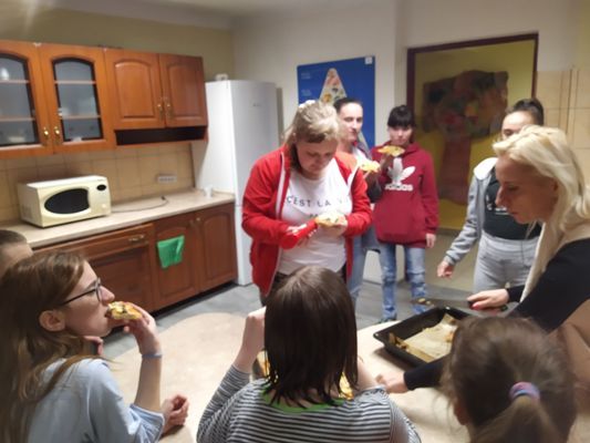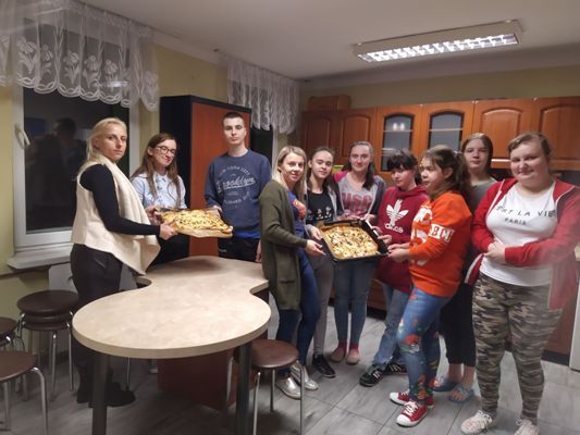 9 lutego wychowankowie grup: III i VI świętowali Międzynarodowy Dzień Pizzy. W czasie spotkania dowiedzieli się, że Pizza jest jedną z najpopularniejszych potraw, znanych na całym świecie. Danie dzięki wielkiej sławie doczekało się swojego święta, jakim jest Międzynarodowy Dzień Pizzy. Obchodzi się go 9 lutego. Skąd właściwie pochodzi ten przysmak? Pszenny placek z dodatkami znany był już starożytnym kulturom. Ich popularność zaczęła jednak rozkwitać dopiero w XVIII wieku, kiedy to w Neapolu pojawiły się pierwsze lokale gastronomiczne zwane "pizzeriami". Pod koniec XIX w. pizza trafiła także do Stanów Zjednoczonych. Natomiast pierwszy lokal serwujący pizzę w Polsce powstał w 1975 r. w Słupsku. Pomysł na otwarcie pizzerii jej właściciel przywiózł bezpośrednio z Włochgdzie odbywał podróż służbową. Dziś lokale serwujące to Włoskie danie można spotkać już na całym świecie. Pracownia gastronomiczna naszego internatu na jeden dzień zamieniła się w pizzerię, w której nasi kucharze przygotowali pyszną, włoską pizzę. Świętowanie zakończyło się degustacją tego ulubionego przez wszystkich dania.