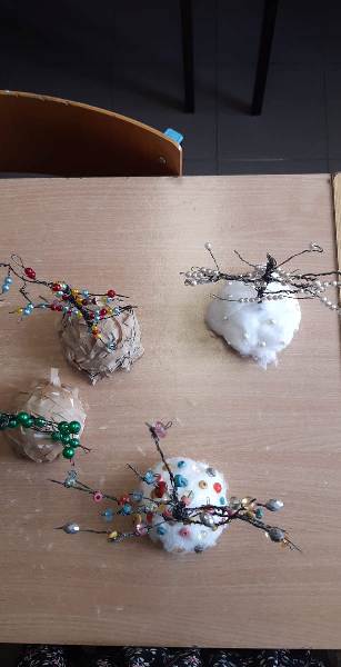 Uczniowie klas Szkoły Przysposabiającej do Pracy w ramach zajęć kreatywnych, papieroplastyki, florystyki, wykonują piękne prace wykorzystując różnorodne techniki, ucząc się zarazem wykorzystywania różnych, dostępnych materiałów. Do swych artystycznych wytworów wykorzystują między innymi kartki starych książek, resztki drutu, kłębki zbędnej włóczki, ziarna zbóż. Z tych materiałów powstają dekoracyjne kwiaty, drzewka szczęścia, modne łapacze snów. Przygotowanymi dekoracjami upiększają swoje pokoje, sale lekcyjne oraz sale sypialne w internacie.