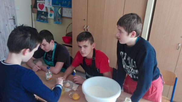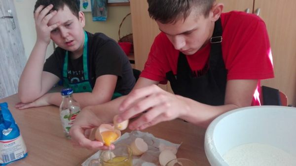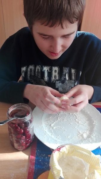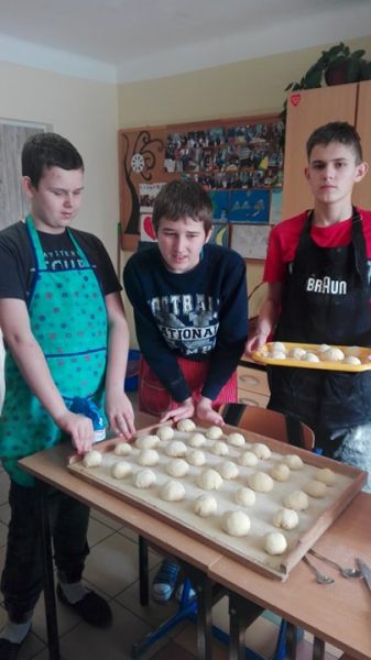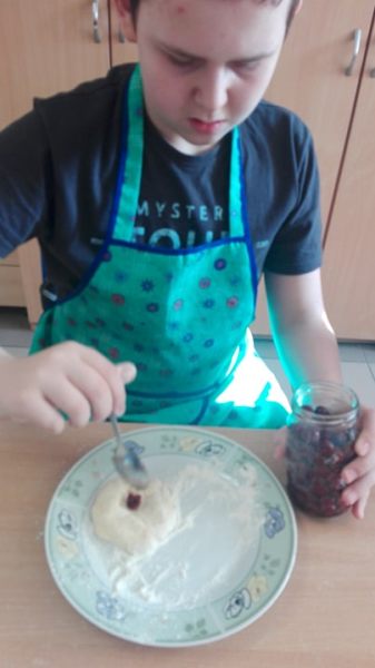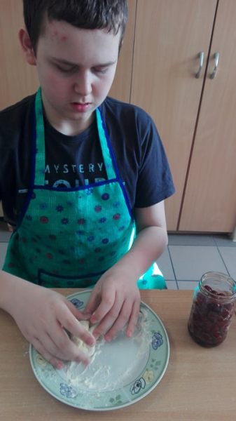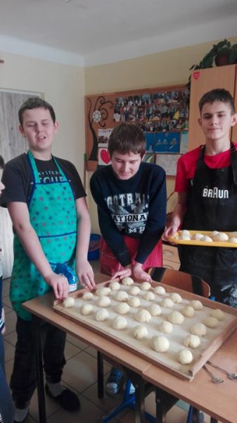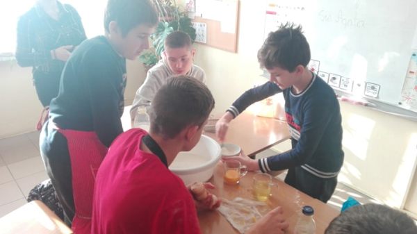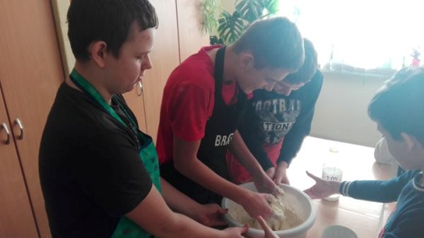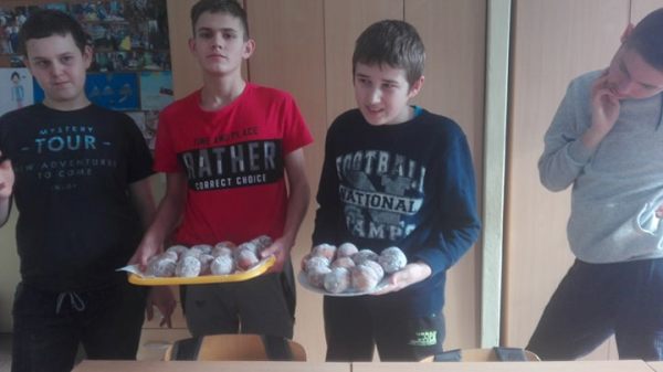 Uczniowie klasy VI i VII by świętować Tłusty Czwartek samodzielnie przygotowali pyszne, domowe pączki nadziewane wisienkami. Pani Justyna czuwała nad produkcją tych tradycyjnych pyszności. Chłopcy w roli cukierników sprawili się na medal!