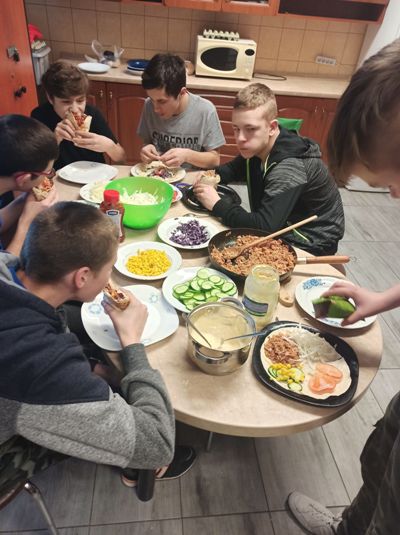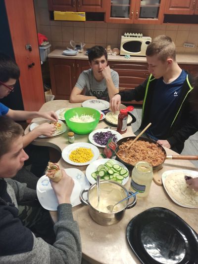 Wychowankowie VII grupy uczyli się samodzielnie wykonać potrawę turecką jaką jest kebab. Zajęcia polegały na nauce krojenia, szatkowania i smażenia potrzebnych do tego dania produktów oraz kształtowaniu odpowiedniej atmosfery aby wyzwolić w dziecku autentyczną radość tworzenia. Celem zajęć było zaszczepienie kulinarnych zainteresować u młodzieży, a także przekształcenie własnej pracy w widoczne i smaczne efekty. Wychowankowie wyciągnęli z zajęć dużo radości oraz satysfakcji, a także nowych umiejętności i wiadomości kulinarnych.