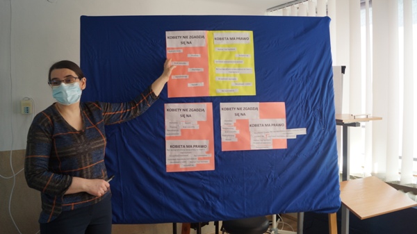 Książka "Dziewczynki latają wysoko" Raguel Diaz Reguera stała się tematem spotkania uczennic naszej szkoły z panią Anną Grochecką – Staniak, bibliotekarką Miejskiej Biblioteki Publicznej „Zielony Kot”. Dziewczęta po wysłuchaniu bajki miały za zadanie określić swoje prawa ora przedstawić to na co nie wyrażają zgody. Przy wykonywaniu pracy trwała gorąca dyskusja. Warsztaty zorganizowane zostały z okazji Dnia Kobiet, co swoją obecnością podkreślił Pan Dyrektor składając wszystkim uczestniczkom warsztatów, najserdeczniejsze życzenia.