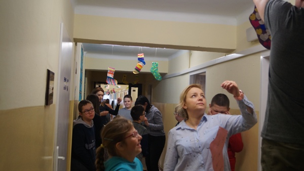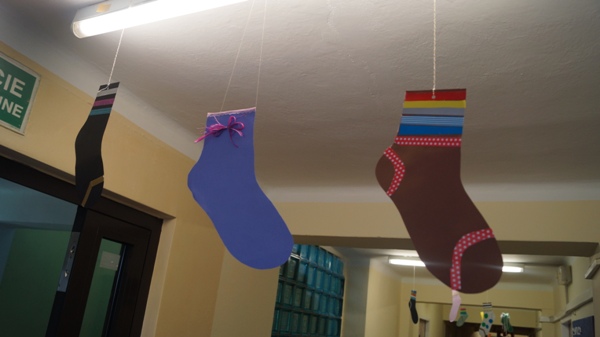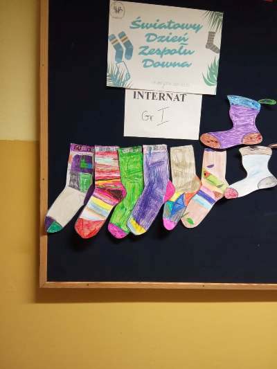 Od 11 marca w naszym ośrodku trwały przygotowania do obchodów Światowego Dnia Zespołu Downa. Celem obchodów tego święta jest zwiększenie świadomości społeczeństwa na temat trisomii 21 oraz propagowanie praw osób z zespołem Downa i integracja z nimi. Z tej okazji uczniowie, nauczyciele i pracownicy naszej placówki, razem przygotowywali kolorowe skarpetki, które 19 marca przyozdobiły korytarze naszej szkoły. Dla wyrażenia solidarności, akceptacji, zrozumienia i otwartości dla osób z zespołem Downa 21 marca zakładamy kolorowe skarpetki, najlepiej nie do pary. Skarpetki mają przypominać nam o fakcie, że w społeczeństwie obok nas żyją osoby na co dzień zmagające się z poczuciem odrębności i niedopasowania do reszty społeczeństwa. Takim działaniem pokazujemy, że solidaryzujemy się z tymi osobami oraz tolerujemy ich odmienność.