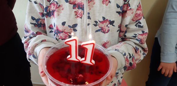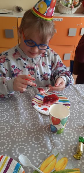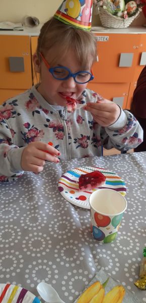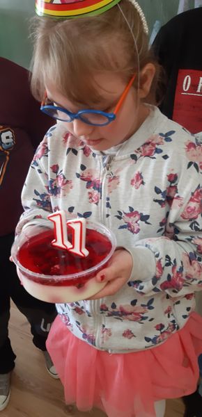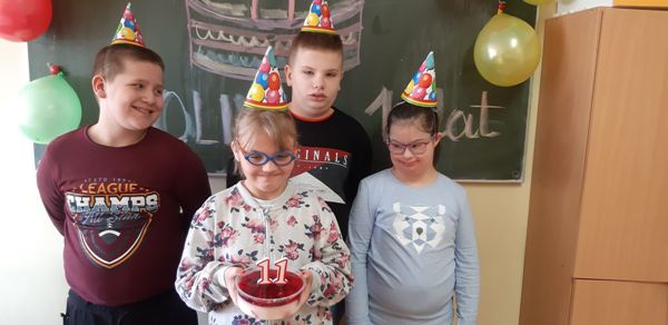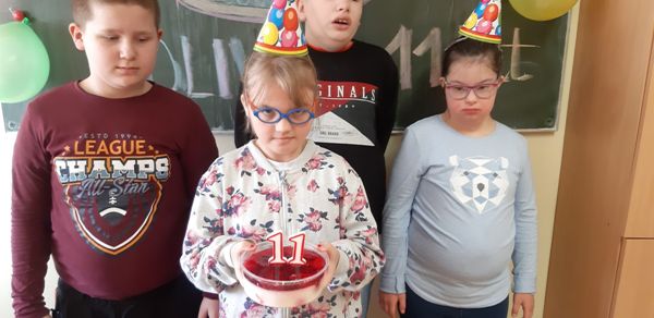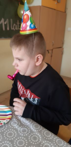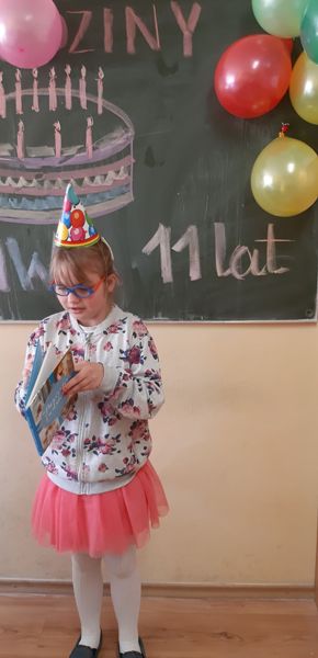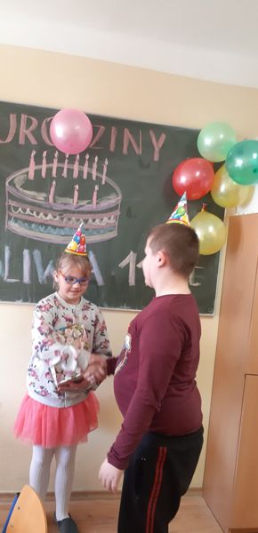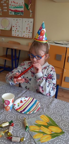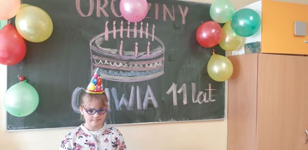 Dzień urodzin to bardzo ważny dzień dla każdego dziecka. To właśnie tego dnia dziecko czuje się wyjątkowo i jest w centrum uwagi. W dniu 9 kwietnia 2021 r. uczennica klasy II Oliwia obchodziła urodziny. Koledzy z klasy wraz z paniami, pod nieobecność dziewczynki przygotowali przyjęcie - niespodziankę: dekorowali salę oraz urodzinowy stół. Były balony i serpentyny oraz tradycyjne STO LAT w wykonaniu wszystkich gości, później życzenia i wręczanie prezentów, a następnie pamiątkowe fotografie. Nie obyło się bez dmuchania świeczek na słodziutkim torcie, którym ze smakiem zajadali się goście wystrojeni w urodzinowe czapeczki. Po przyjęciu nadszedł czas na zabawę. Były tańce, pląsy oraz zabawy przy muzyce. Uroczystość kończyliśmy porządkowaniem sali, w którym brali udział wszyscy. Takie URODZINY Oliwia zapamięta na bardzo długo.