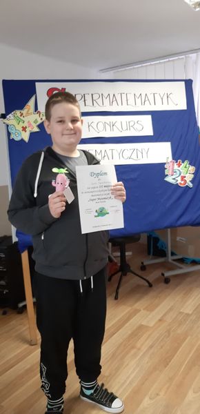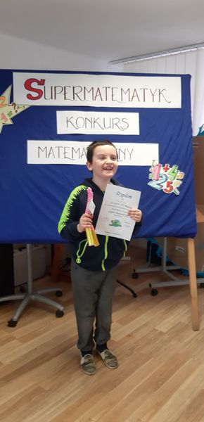 W dniu 22 kwietnia odbył się konkurs matematyczno - przyrodniczy dla klas I-III Supermatematyk. Celem konkursu było wyłonienie wśród uczniów SUPERMATEMATYKÓW, którzy potrafią dobrze wykonać obliczenia liczbowe, dostrzegają i umiejętnie stosują zasady i prawidłowości matematyczno – przyrodnicze; wykazują się umiejętnością logicznego myślenia i wyobraźnią przy rozwiązywaniu problemów matematycznych. Konkurs odbył się w dwóch grupach ( poziom I i II). Uczniowie w skupieniu i ogromnym zaangażowaniu rozwiązywali zadania matematyczne. Konkurs przebiegał w miłej atmosferze z zasadami zdrowej rywalizacji. Po sprawdzeniu i ocenieniu przyznane zostały tytuły i pamiątkowe dyplomy: