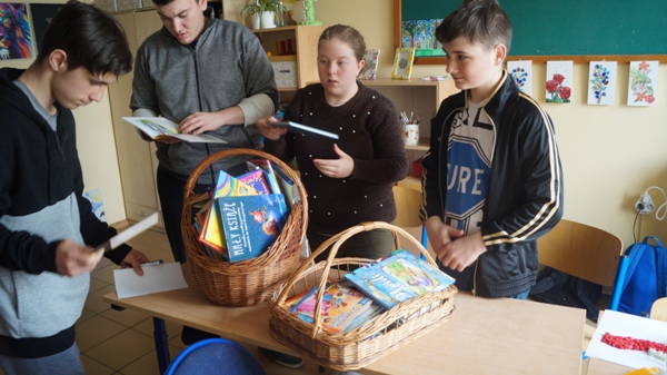 Z okazji Światowego Dnia Książki i Praw Autorskich w dniach 26.04 – 28.04 2021 r. uczniów wszystkich klas odwiedziła Biblioteka na Kółkach. Odbyła się również impreza czytelnicza w ramach, której odbyły się warsztaty czytelnicze na temat biblioteki, książki. Podczas spotkań przedstawione zostały zalety czytania książek, zasady zachowania się w bibliotece i czytelni oraz jak należy obchodzić się z książką. Uczestnicy poznali dzieje książki oraz jakie są etapy tworzenia książki „od pomysłu do księgarni”. W czasie warsztatów odbył się konkurs głośnego czytania, liczne zabawy dydaktyczne takie jak: książkowe menory, puzzle, praca plastyczna - wykonanie zakładek do książek oraz kalambury i zgadywanki.Uczniowie wraz z wychowawcami podjęli wyzwanie na określoną, dzienną ilość czytanych stron książek. Finał wyzwania będzie ogłoszony pod koniec roku szkolnego.