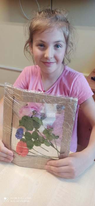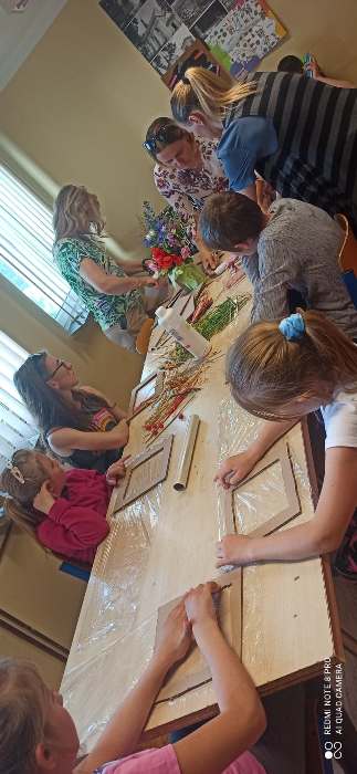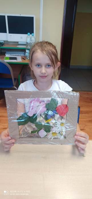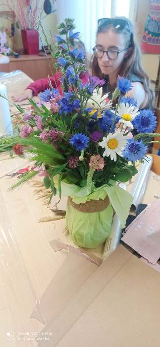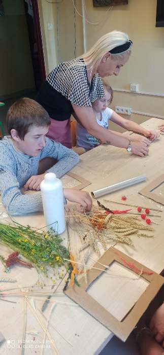 Wychowankowie grup: 1, 2 i 3 w czasie wspólnego spaceru w promieniach słońca, zbierali polne rośliny, kwiaty: róże, maki, bławatki, romany oraz trawy i zielone gałązki. Wracając do internatu oprócz pięknego bukietu mieliśmy materiał na ciekawe, wspólne zajęcia. Wychowankowie tworząc kompozycje korzystali z wachlarza barw, kształtów i zapachów. Dzięki kreatywności uczestników powstały piękne, wielobarwne, roślinne witraże. To był bardzo miły dzień, który spędziliśmy w otoczeniu przyrody, zacieśniając koleżeńskie relacje.