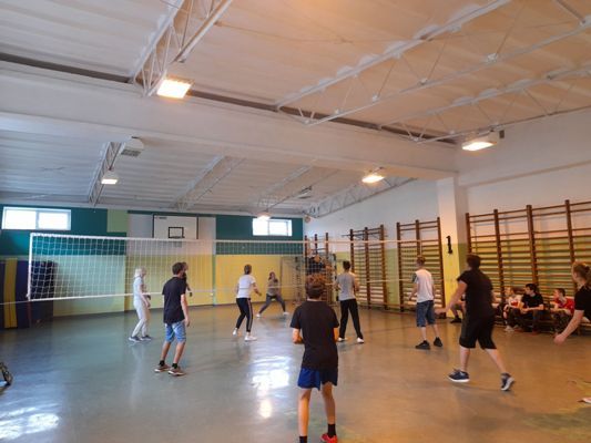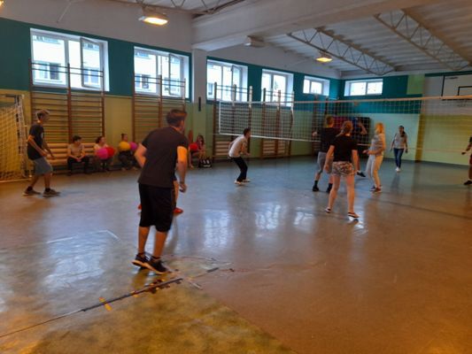 Tradycyjnie, co roku w naszej szkole, rozgrywamy mecz piłki siatkowej - uczniowie kontra nauczyciele. Rozgrywki zawsze odbywały się z okazji Dnia Dziecka. W tym roku postanowiliśmy uczcić i podsumować mijający rok szkolny właśnie meczem piłki siatkowej. Po sportowej walce mecz zakończył się wygraną nauczycieli, jednak uczniowie wykazali się dużym zaangażowaniem i umiejętnościami, które zdobyli na lekcjach wychowania fizycznego i zajęciach pozalekcyjnych. Nie zabrakło także grupy kibiców z kolorowymi pomponami, która zagrzewała do walki obie drużyny. Z niecierpliwością czekamy na kolejne mecze w przyszłym roku szkolnym. Do zobaczenia!
