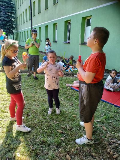 W miłej już wakacyjnej atmosferze uczniowie z klas szkoły podstawowej skorzystali z dobrodziejstw kończącej się wiosny: pogodnego nieba, ciepła oraz promieni słońca. W piątkowy poranek 18.06.2021 r. na podwórku szkolnym odbył się piknik integracyjny dla uczniów z drugiego piętra. Organizatorami pikniku były nauczycielki z zespołu ds. nauczania w klasach I-III. Uczestnicy pikniku mieli okazję pobyć wreszcie razem na powietrzu, w cieniu drzew, skosztować potraw z grilla (szaszłyki, kiełbaski, pieczony chleb) oraz pobawić się w rozmaite zabawy niewymagające pojmowania skomplikowanych zasad, czy reguł. Beztroski relaks uwieńczył lodowy deser. Dziękujemy Wszystkim za taki liczne przybycie i wspólnie spędzony czas.