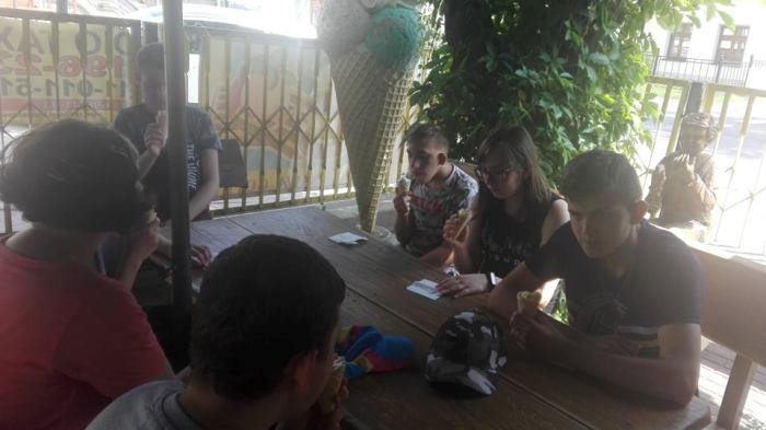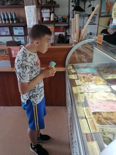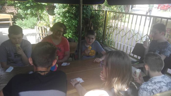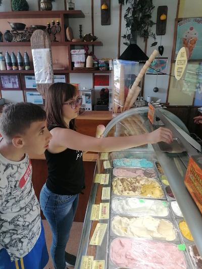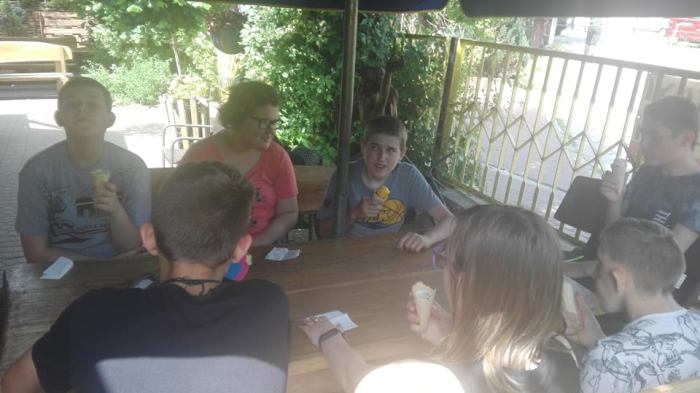 W środę grupa uczniów szkoły podstawowej spędziła miłe chwile na rozmowie oraz słodkim deserze w cieniu parasola przy lodziarni państwa Duławskich. Wszyscy smakosze mogli samodzielnie dokonać zakupu swoich ulubionych smaków, pysznych lodów tradycyjnie wytwarzanych od 1944 roku. W ten sposób uczciliśmy kończący się rok szkolny. Życzymy wszystkim dobrych i bezpiecznych wakacji. Do zobaczenia w nowym roku szkolnym.