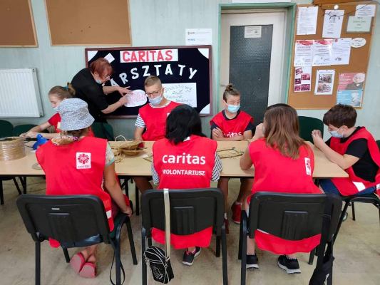 11.09.2021 roku wychowankowie pozostający na weekend w internacie uczestniczyli w warsztatach „Sznurek kreatywnie” organizowanych przez Caritas w Hrubieszowie przy Parafii Św. Mikołaja w Hrubieszowie. Młodzież uczyła się pleść ze sznurka. Wykonali szkatułki, studzienki oraz ramki na zdjęcia wykorzystując naturalne materiały i ozdabiając wszystko sznurkiem i workiem jutowym. Takie warsztaty to bardzo atrakcyjny sposób na spędzanie czasu wolnego od nauki i codziennych obowiązków.