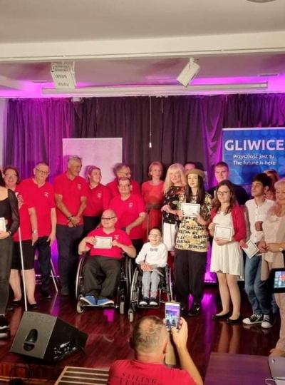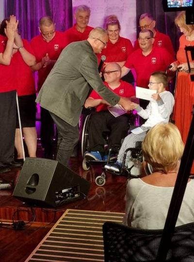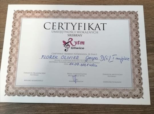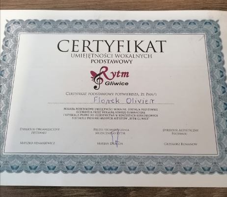Kolejny sprawdzian i kolejny sukces naszego ucznia! Olivier Florek przeszedł do finału III Ogólnopolskiego Festiwalu Wokalnego Osób z Niepełnosprawnościami, zajmując I miejsce w eliminacjach. To już druga odsłona naszej przygody z pięknymi Gliwicami i organizatorem wspomnianego festiwalu - Fundacją Rytm. Tym razem Olivier zaśpiewał jedną z ostatnich kompozycji zmarłego niedawno, genialnego kompozytora Romualda Lipki, piosenkę "Biały pielgrzym". Za swój występ otrzymał rzęsiste brawa i wiele pochwał. Przed nami październikowy finał, w którym wystąpi 30 wykonawców. Wymagania jury na pewno wzrosną, ale nie o miejsca nam chodzi! Najważniejsze jest samo obcowanie z muzyką, pokonywanie własnych słabości i dzielenie się tym, co dostaliśmy z Góry. Spotkanie z innymi muzykami, ich uśmiechy i dobre słowa za każdym razem ładują nasze życiowe baterie. Wielkie dzięki należą sie też rodzicom Oliviera, którzy od początku jego nauki śpiewu duchowo, fizycznie i finansowo (dwudniowy wyjazd i pobyt w Gliwicach dużo kosztuje) dzielnie wspierają jego muzykowanie. W finale Olivier na pewno da z siebie wszystko a nam pozostaje mocno trzymać za niego kciuki.