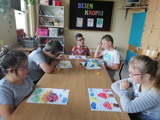 W środę 15 września 2021 roku przypada święto kreatywności, talentu i odwagi w pokonywaniu trudności - Dzień Kropki. Z tej okazji w naszej szkole odbył się konkurs plastyczny. Uczniowie młodszych klas szkoły podstawowej samodzielnie i z wielkim zaangażowaniem przygotowywali kropkowe prace plastyczne. Warsztatom towarzyszyło opowiadanie o historii tego wyjątkowego, "kropkowego" dnia.