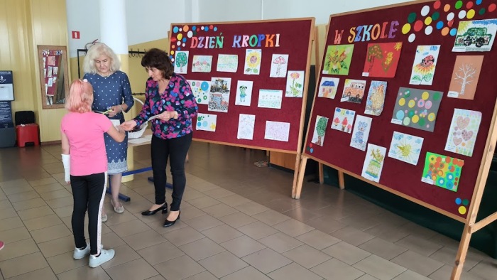 Z okazji Dnia Kropki w naszej szkole odbył sie konkurs plastyczny. Wpłynęło 31 pięknych prac wykonanych dowolną techniką kropki. Uczestnicy stanęli na wysokości zadania i wykazali się inwencją twórczą. Wszystkie prace były kreatywne i wykonane własnoręcznie z wielką starannością. W dniu 18.09.2021 r. odbyło sie uroczyste roztrzygnięcie konkursu. Za swoje prace uczestnicy konkursu otrzymali wyróżnienia i dyplomy oraz drobne upominki.