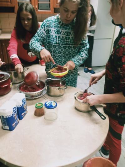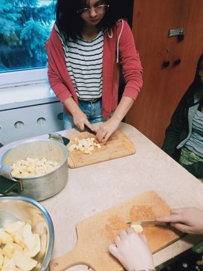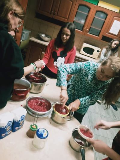 Koniec lata i początek jesieni to czas, by wykorzystując dostępne owoce i warzywa przetworzyć je i przygotować zapasy - skarby w słoikach. W czasie zajęć dydaktyczno - wychowawczych internatu dziewczęta z VI Grupy Wychowawczej nabywały praktyczne umiejętności wykonywania przetworów. Zajęcia te odbyły się już dwukrotnie (zaplanowano dalszą cykliczność). W czasie pierwszych zajęć wychowanki poznały sposoby wykorzystania malin - wykonały sok oraz galaretkę. W czasie drugich wykorzystując jabłka antonówki zrobiły dżem. Cel zajęć to nauka przygotowania zdrowych (bez użycia konserwantów) przetworów. Dziewczęta bardzo aktywnie wykonywały przydzielone im zadania. Obraz ich pracy na załączonych zdjęciach.