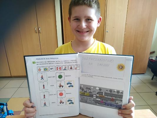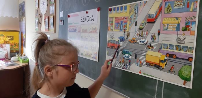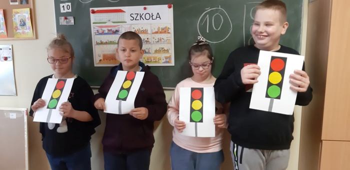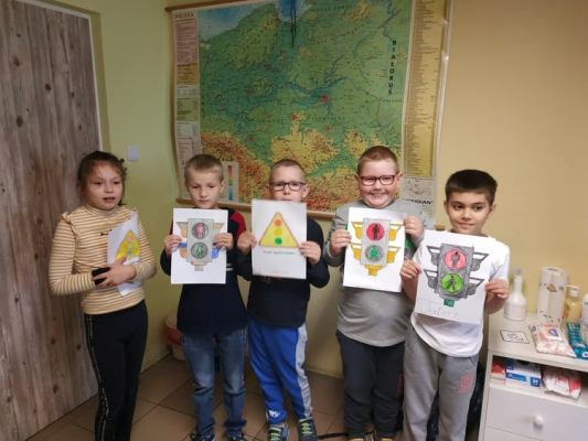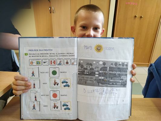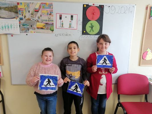 Jak zawsze, z początkiem nowego roku szkolnego uczniowie zostają zapoznani z zasadami ruchu drogowego i bezpiecznego poruszania się po drodze. Uczniowie klas 1-3 szkoły podstawowej uczestniczyli w zajęciach, podczas których przypomnieli zasady bezpiecznego przechodzenia przez jezdnię z sygnalizacją i bez sygnalizacji świetlnej, rozpoznawali i nazywali znaki drogowe, wskazywali sygnalizator świetlny pozwalający na przejście i zabraniający przejścia, dowiedzieli się, jak ważnym czynnikiem zwiększającym bezpieczeństwo jest noszenie elementów odblaskowych (szczególnie w okresie zbliżającej się jesieni).
