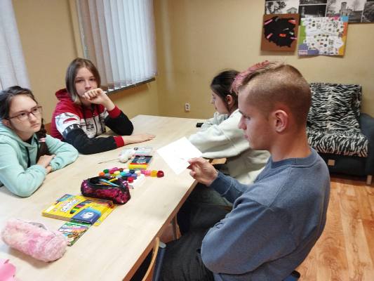 Wychowankowie grupy V uczestniczyli w spotkaniu pt. "Przyjaźń". Zajęcia miały na celu integrację grupy, ukazanie czym jest przyjaźń i jakie cechy reprezentuje przyjaciel oraz wzbudzanie wzajemnego szacunku i empatii. Dodatkowo wychowankowie stworzyli "Dekalog przyjaźni" i wykonali "Drzewko przyjaźni", które stały się elementem gazetki w świetlicy grupy. Wszyscy wychowankowie wykazali się zaangażowaniem i aktywnością w czasie zajęć.