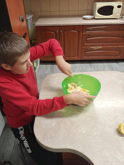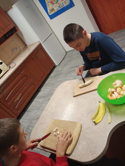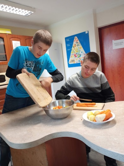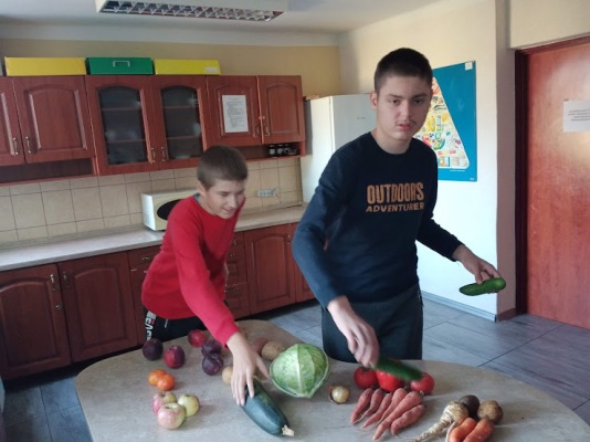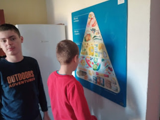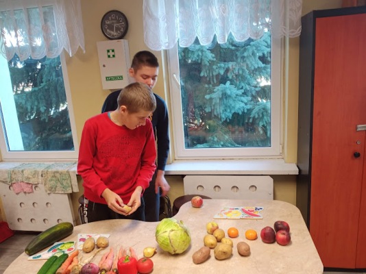 Włączając się w propagowanie idei zdrowego trybu życia, w ramach działalności szkolnego koła PCK wychowankowie II grupy wychowawczej brali udział w cyklu zajęć promujących zdrowe odżywianie. W ciągu tygodnia zapoznali się z zasadami zdrowego żywienia omawiając znane warzywa i owoce dokonując przy tym ich segregacji, poznali piramidę żywienia. Ponieważ gotowanie to duża przyjemność dla wychowanków II grupy dlatego przygotowanie sałatki warzywnej i owocowej sprawiło im dużo radości. Na zakończenie „zdrowego tygodnia” wychowankowie udali się na pobliską „siłownię pod chmurką”. Najważniejszym jest jednak wyciągnięcie wniosku, że włączenie odpowiedniej diety bogatej w warzywa i owoce oraz aktywne spędzanie wolnego czasu to podstawa gwarantująca utrzymanie zdrowia.