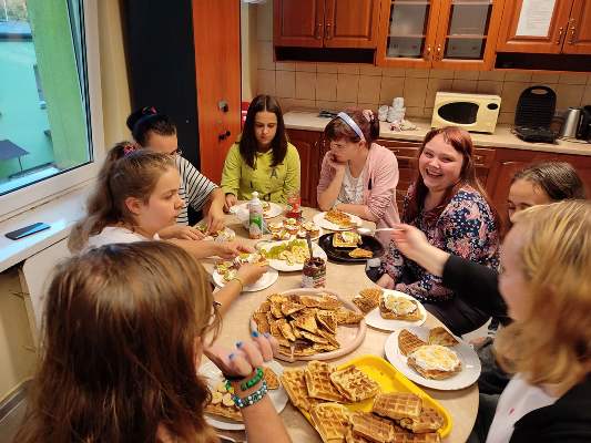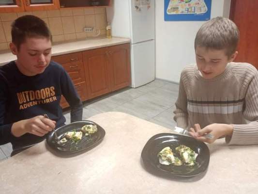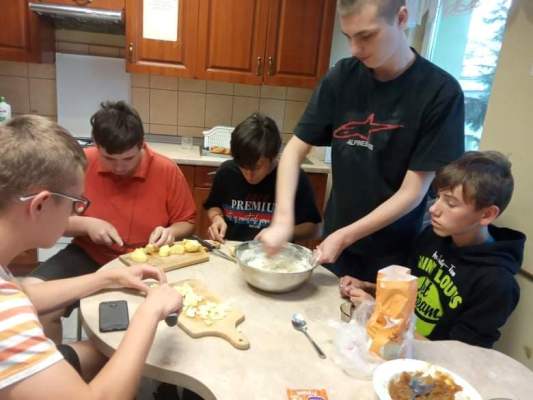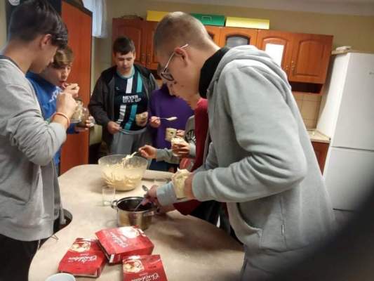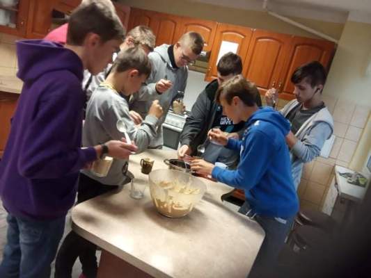 Ostatnie dwa tygodnie września wychowankowie poszczególnych grup brali udział w warsztatach kulinarnych. Pod okiem wychowawców z wielkim zaangażowaniem przemienili się w prawdziwych kucharzy. Z dokładną precyzją wykonywali potrawy a także desery o różnym poziomie trudności. Głównym tematem zajęć było: Grupa II - Jajeczna fantazja (zapiekanka jajeczno- pieczarkowa). Grupa III - Naleśniki z powidłami, Pierniki z białą czekoladą. Grupa VI - Gofry z owocami, Cukinia w cieście naleśnikowym. Grupa VII - Racuchy z jabłkami, Nugetsy z fileta, Deser z polewą czekoladową. Wspólna degustacja przygotowanych potraw była nagrodą za trud i wytrwałość w pracy. Wszyscy z apetytem zjadali swoje dzieła. Zachęcamy wszystkie grupy do kontynuacji tego wydarzenia, gdyż jest ono wspaniałą integracją grup wychowawczych oraz sposobem na przyjemne spędzanie czasu wolnego w miłym towarzystwie.