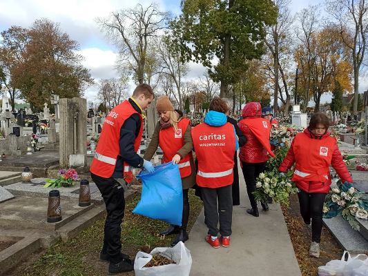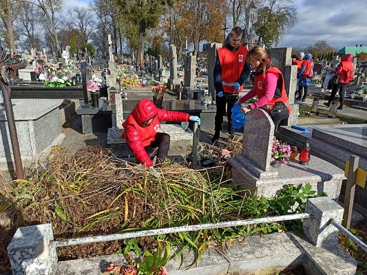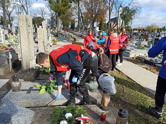 „Ci, którzy odeszli są w naszej pamięci”. Zbliżający się listopad jest czasem refleksji nad kruchością naszego życia. Wprowadza nas w zadumę i jednocześnie prowadzi nas do czynienia dobra oraz pamięci o tych co odeszli. Z myślą o nich Parafialny Zespół Caritas i wychowankowie Powiatowego Zespołu Placówek Szkolno - Wychowawczych przeprowadzili akcję pod hasłem „Pamięć o tych co odeszli”. W dniu 23.10.2021 r. wolontariusze uporządkowali zaniedbane, opuszczone groby , złożyli przez siebie zrobione wiązanki, zapalili znicze jako wyraz szacunku i pamięci dla tych, których już nie ma wśród nas.