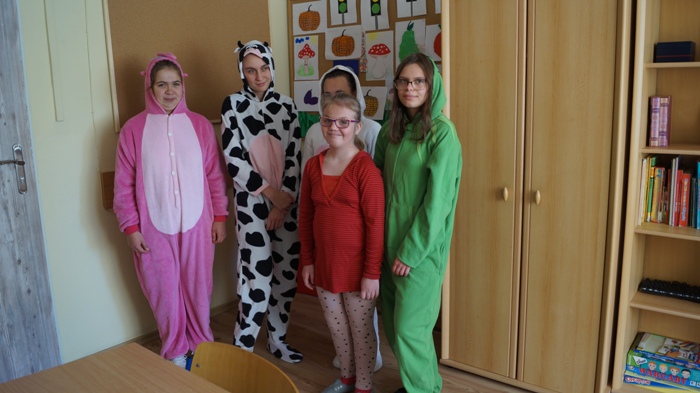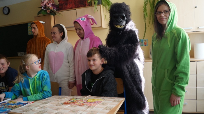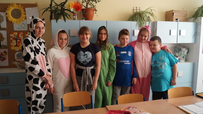 W poniedziałek w naszym Ośrodku było Kolorowo - wystrzałowo! A to za sprawą barwnych strojów uczniów i nauczycieli. Po szkolnych korytarzach spacerowały bajkowe postacie, z którymi można było przybić piątkę, przytulić się oraz zrobić pamiątkowe zdjęcie. Uśmiech i dobre samopoczucie nie opuszczały nikogo. Kolorowe zwierzaki odwiedziły uczniów wszystkich klas by upewnić się, że w szkole zapanowała wspaniała atmosfera sprzyjająca dobrym relacjom międzyludzkim!