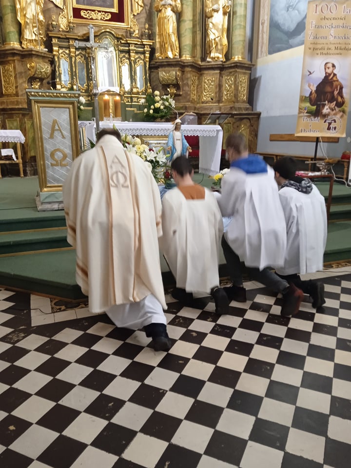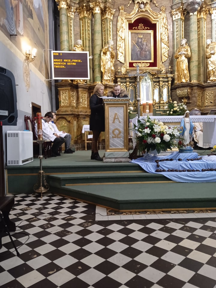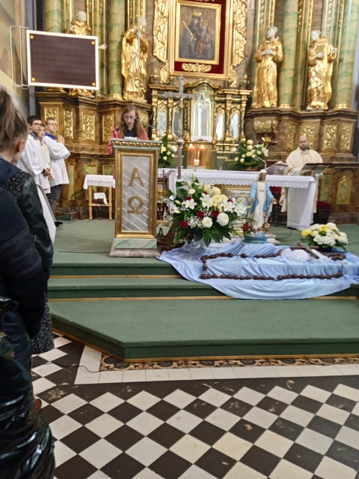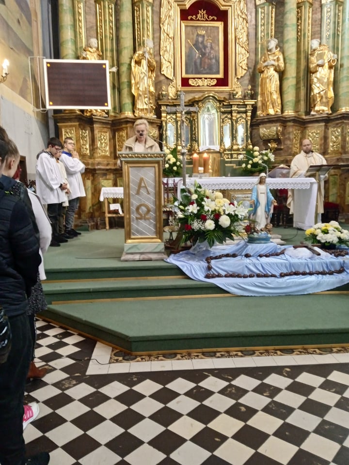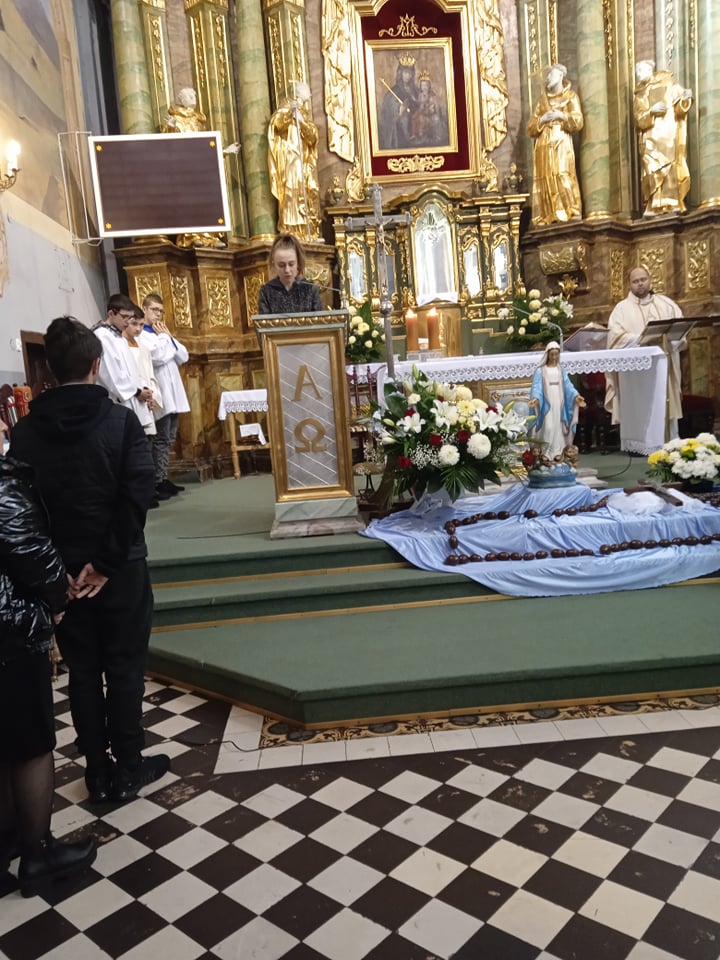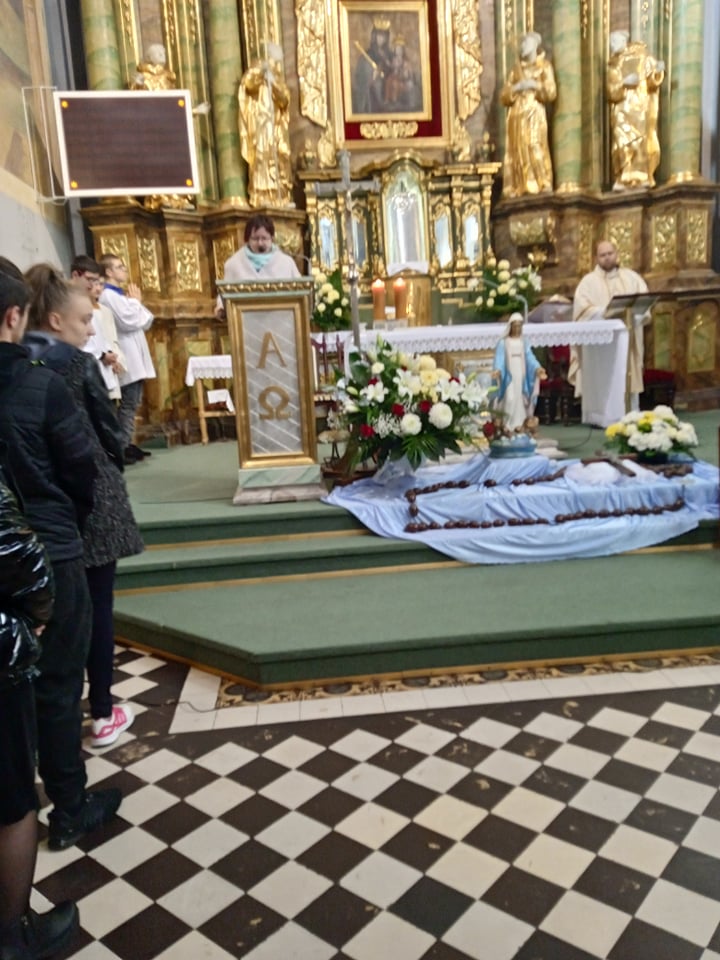 W piątek 22 października, w dniu wspomnienia św. Jana Pawła II, uczniowie uczestniczyli we Mszy św. w kościele św. Mikołaja w Hrubieszowie. Poprzez modlitwę, zaangażowanie liturgiczne, śpiew pięknych pieśni, dzieci, młodzież, rodzice i pracownicy oddali cześć Wielkiemu Polakowi - Janowi Pawłowi II. Podczas homilii ks. Andrzej przypomniał o wartościach głoszonych przez niezapomnianego papieża i o potrzebie ciągłego wzrastania w modlitwie i miłości do Boga i drugiego człowieka. Na zakończenie sprawowanej Eucharystii kapłan poświęcił różańce dla dzieci przygotowujących się do przyjęcia I Komunii Świętej.
