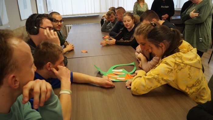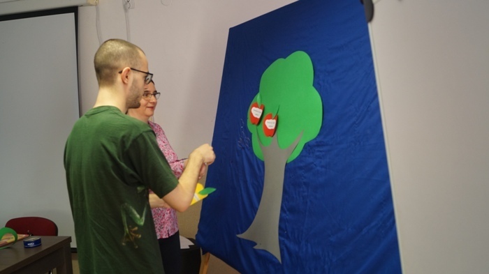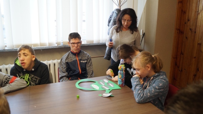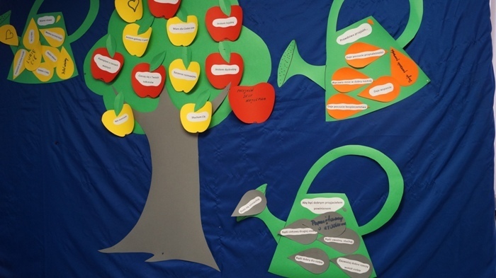 W środę kontynuowaliśmy działania Tygodnia Dobrych Relacji. Młodzież szkoły podstawowej i szkoły przysposabiającej do pracy spotkała się z panią Marzeną i panią Anią – bibliotekarkami z Zielonego Kota. Panie na podstawie bajki „Tippi i urodzinowe ciasto” Marcina Mortki przeprowadziły warsztaty na temat przyjaźni. Na tablicy pojawiło się drzewo przyjaźni oraz konewki z wszystkim co niezbędne do pielęgnowania tej jakże ważnej relacji międzyludzkiej. Długa przerwa w tym dniu to raj dla łasuchów. Pyszne drożdżówki w kilku smakach przygotowali nasi „szkolni cukiernicy”. W klasch trwają również prace nad plakatami "Razem raźniej" - wkrótce wystawa!