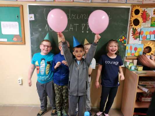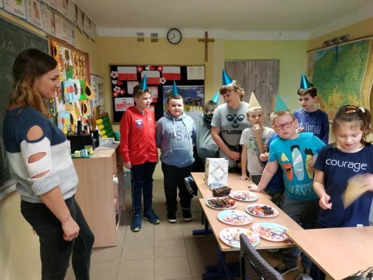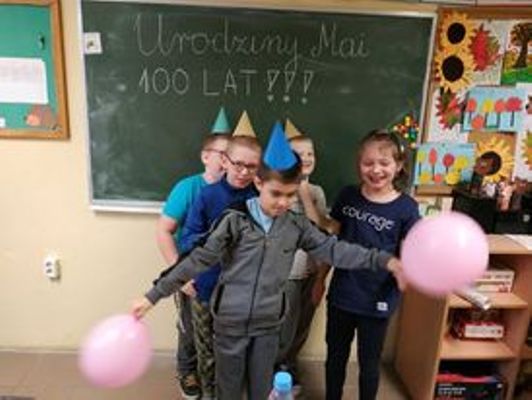 18 listopada klasa I świętowała urodziny Mai. Były życzenia, prezenty, zaśpiewaliśmy 100 lat. Dla miłych gości Maja przygotowała słodki poczęstunek, który jedliśmy z wielką przyjemnością. To był wspaniały dzień.