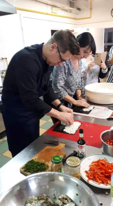 W dniu 20 października 2020 r. w ramach projektu "Akademia kompetencji" współfinansowanego przez Regionalny Ośrodek Polityki Społecznej w Lublinie, dofinansowane przez Województwo Lubelskie ze środków PFRON odbyło się szkolenie dla 20 osób bezpośrednio zaangażowanych w proces rehabilitacji osób niepełnosprawnych. Tematem przewodnim kursu kulinarnego „Akademia Kulinarna” były „Ryby i owoce morza”. Kurs poprowadził szef Hotelu Artis w Zamościu pan Marcin Sikora. Ryba jest nieodzownym produktem wszystkich kuchni świata i również w Polsce też jest doceniana. Pojawia się na naszych stołach w różnych postaciach. Owoce morza natomiast mają wysoką wartość odżywczą. Wymieniając ich zalety nie można nie wspomnieć, że są źródłem, jodu tak ważnym w diecie każdego z nas, a także selenu i fluoru. Przygotowaliśmy wyśmienite sushi, krewetki, ośmiornicę, sałatki z owocami morza.