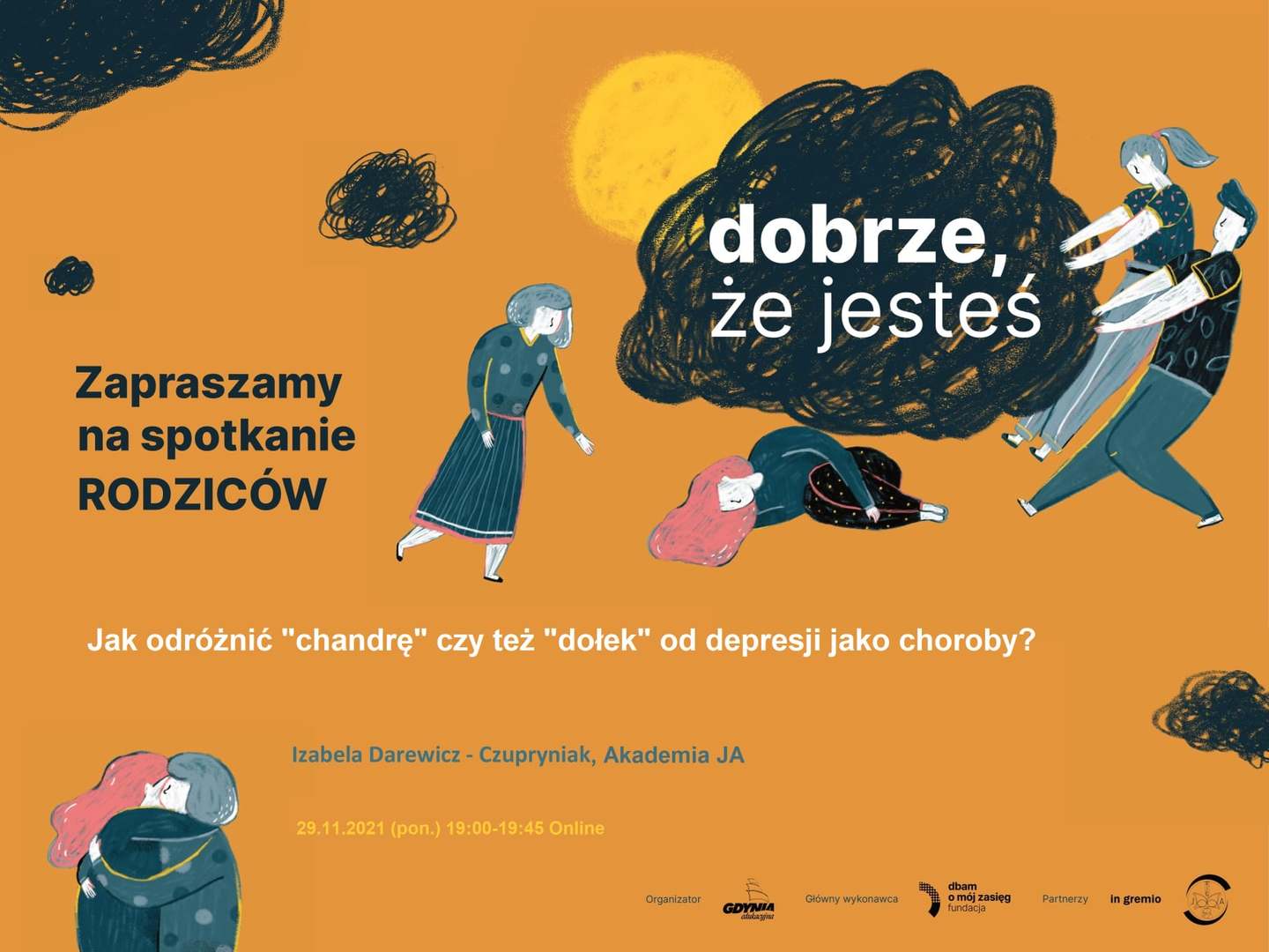 Kochani rodzice, po raz kolejny zapraszamy na kolejne darmowe webinarium już jutro o godzinie 19:00. Webinarium to cykl spotkań w ramach kampanii "Dobrze, że jesteś" organizowane przez miasto Gdynia Fundacja Dbam o Mój Zasięg In gremio Akademia JA