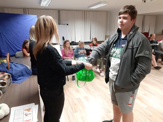 Jesiennych sceptyków trudno przekonać o tym, że nielubiana przez nich pora roku jest naprawdę wyjątkowa. A przecież koniec lata nie oznacza wcale, że natura poskąpi nam pięknych krajobrazów i sezonowych darów. Przeciwnie, zwłaszcza tych ostatnich ofiaruje nam całe mnóstwo. Wychowankowie grup wychowawczych podczas zajęć „Dary jesieni” mogli nimi nacieszyć zmysły – wzroku, węchu i smaku. Przy okazji otrzymaliśmy zastrzyk odporności na zbliżającą się zimę. Przeprowadzone zabawy, konkursy i zgadywanki dały uczestnikom wiele doznań oraz dobra zabawę.