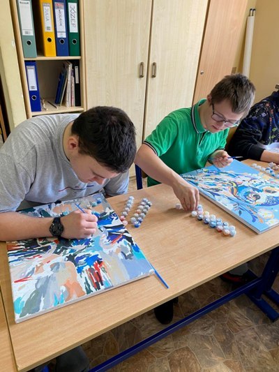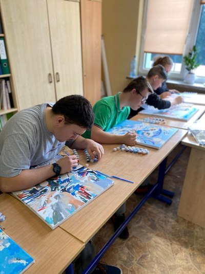 Twórczość nie jest zarezerwowana tylko dla artystów, albowiem każdy może być twórczy we wszystkim, co robi i właśnie tego mogli doświadczyć nasi uczniowie uczestnicząc w warsztatach „Malowanie po numerach”, realizowanych przez Fundację „Zakątek Terapeutyczny”, a współfinansowanych przez Regionalny Ośrodek Polityki Społecznej w Lublinie, dofinansowanych przez Województwo Lubelskie ze środków PFRON. Wszelkiego rodzaju twórczość artystyczna daje nam okazję do przeżycia radości szczególnego rodzaju. Pozwala przeżyć satysfakcję z własnych dokonań, wzmacnia wiarę w siebie i poprawia samoocenę. Jest też po prostu przyjemnością, relaksem, zabawą. Malowanie po numerach to unikatowa możliwość, która pozwoliła uczestnikom poczuć się prawdziwymi artystami. Stworzyli oni piękne obrazy nie mając do tego specjalnego wykształcenia artystycznego i dlatego zabawa z malowaniem stała się prawdziwą przyjemnością. Udział w warsztatach pozwolił uczestnikom przeżyć satysfakcję z własnych dokonań. Zajęcia dały mnóstwo radości i pozytywnie wpłynęły na poczucie ich estetyki. Dały możliwość odbioru i tworzenia sztuki, nabywania praktycznych umiejętności, wyzwoliły poczucie sprawstwa i pozwoliły odnieść sukces, co jest niezwykle istotne w przypadku budowania poczucia własnej wartości. Dzięki warsztatom młodzież rozwinęła swoje zainteresowania i odkryła w sobie artystyczną pasję.