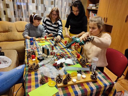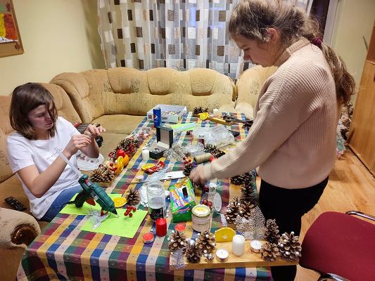 „Nie liczy się to ile posiadasz, ale ile dajesz innym i jak się z nimi dzielisz”. Grudniowe popołudnia - okres przedświąteczny to doskonały czas aby angażować się w różne akcje charytatywne. To właśnie chęć pomocy innym, uszczęśliwianie ludzi oraz czynienie dobra skłoniło wychowanki grupy VI do działania, wykonując stroiki świąteczne jak i również wypiekając różnego rodzaju ciasteczka. Wszystkie wytwory zostaną przekazane na kiermasz oraz aukcje, z których dochód przeznaczony będzie na szczytny cel. Pod okiem wychowawców dziewczęta chętnie uczestniczyły w zajęciach. Akcje charytatywne są powodem do radości, wdzięczności, a także bywają chwilami wzruszeń.