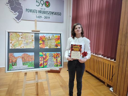 Nasi uczniowie otrzymali nagrody oraz wyróżnienia w konkursie plastyczno-fotograficznym „Jesień w Powiecie Hrubieszowskim” – Edycja II, zorganizowanym przez panią Anetę Karpiuk Starostę Hrubieszowskiego. Konkurs cieszył się dużym zainteresowaniem również wśród uczniów naszego ośrodka. Wyróżnieni autorzy prac w kategorii prace plastyczne (szkoły średnie):
