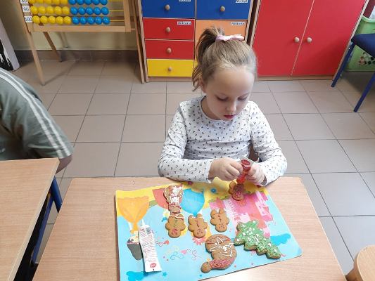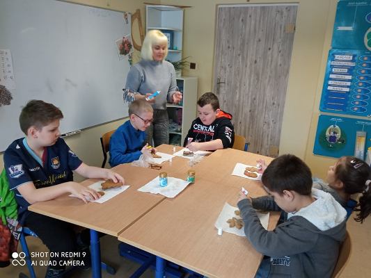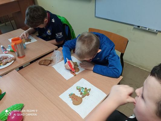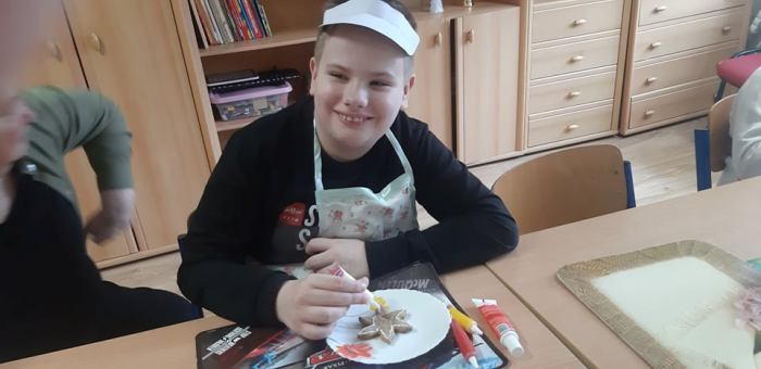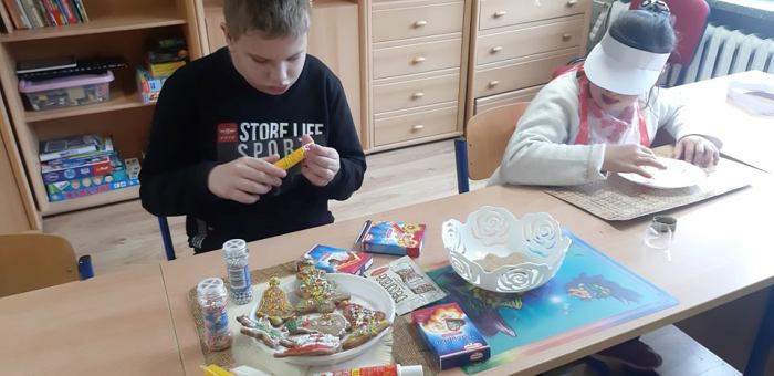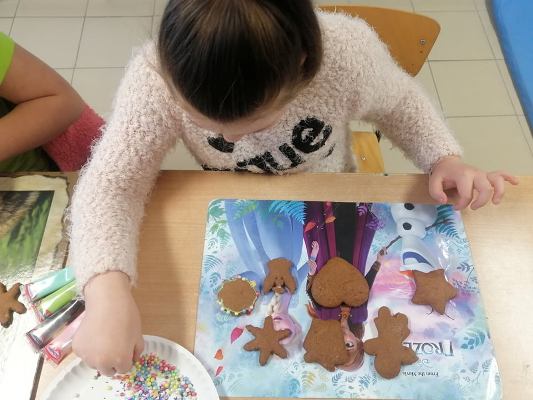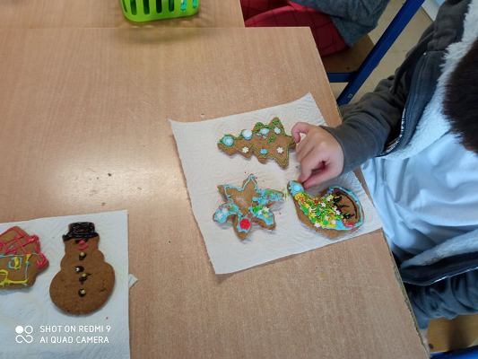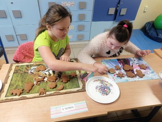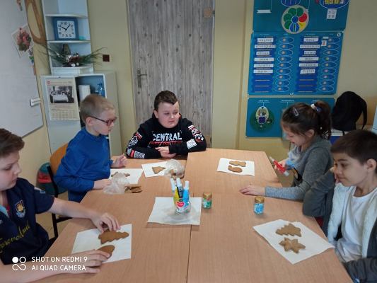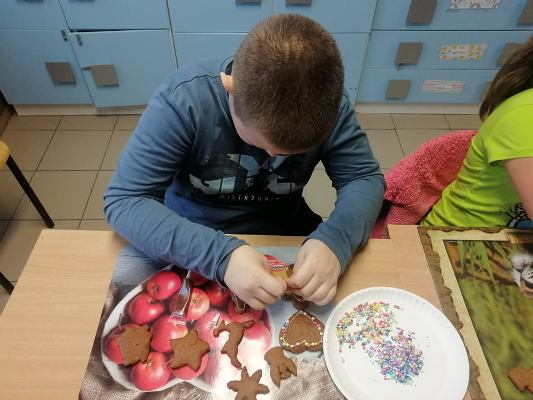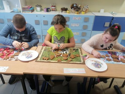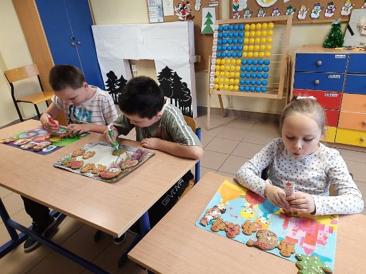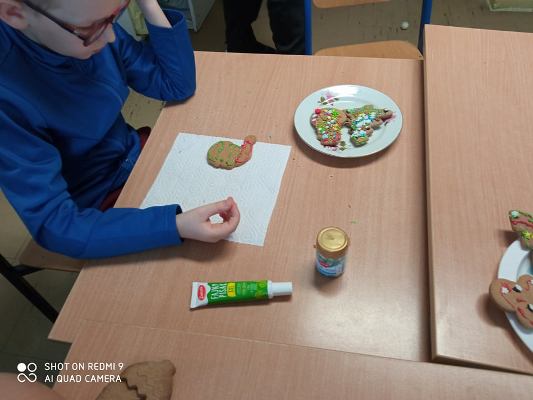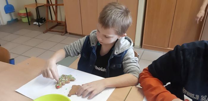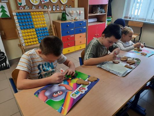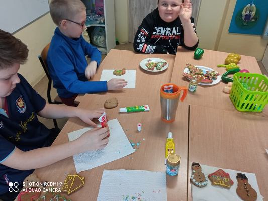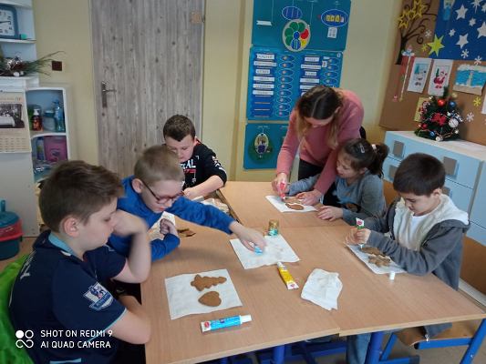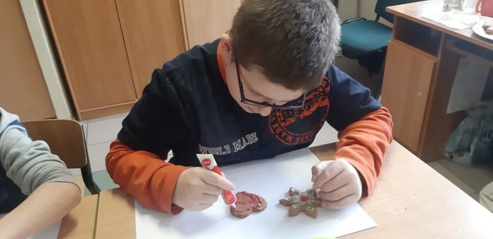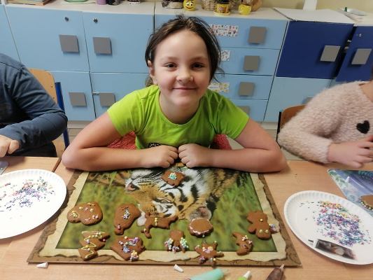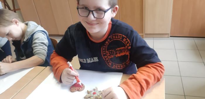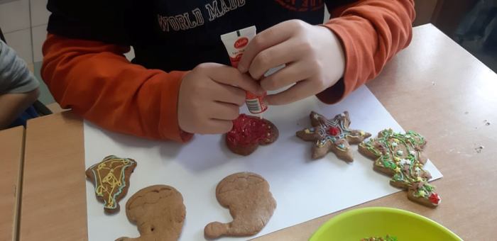 Najmłodsi uczniowie naszej szkoły wzięli udział w warsztatach kulinarnych pod hasłem „Piernikowe cuda”. Uczniowie wspólnie ozdabiali wypieczone, miodowe słodkości kolorowymi lukrami i posypkami. Podczas spotkania panowała miła i już świąteczna atmosfera, słuchaliśmy kolęd i pastorałek. Piernikowe cudeńka, które powstały w trakcie warsztatów udekorują świąteczne stoły.