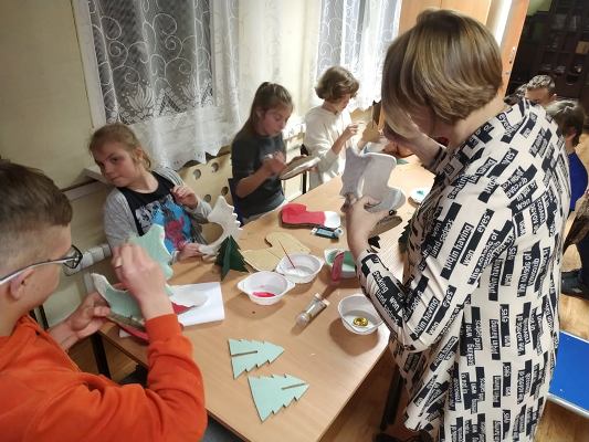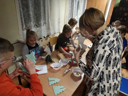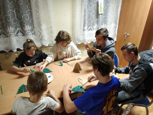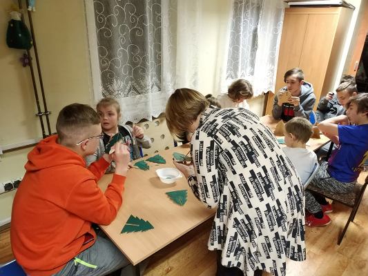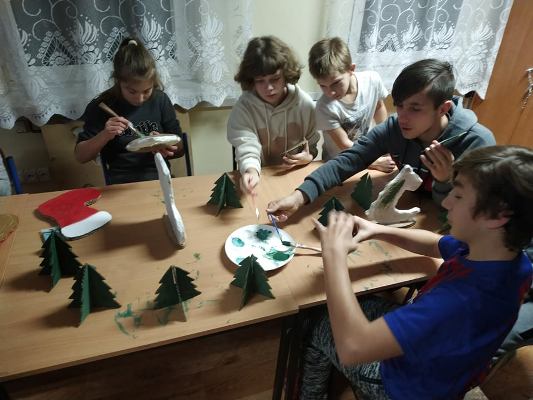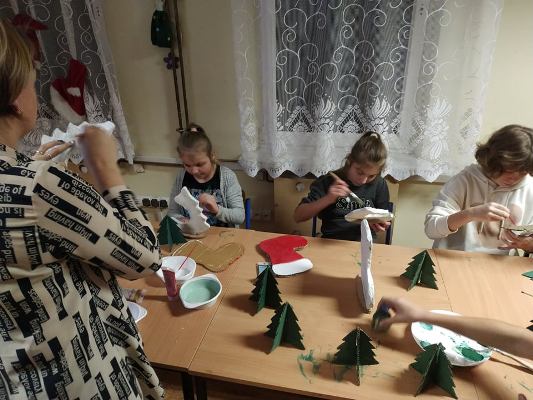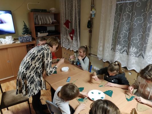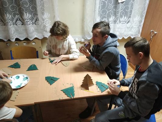 Święta Bożego Narodzenia są bardzo radosnym czasem, na który z wytęsknieniem oczekują zarówno dzieci jak i dorośli. Są to święta rodzinne, pełne tradycji i zwyczajów, które chcemy przekazywać młodszym pokoleniom. Wychowankowie grup I i VII wykorzystali poniedziałkowe popołudnie by przygotować ozdoby świąteczne. Spotkanie było doskonałą okazją do integracji, rozwijania kreatywności, miłego spędzenia czasu oraz wspólnej zabawy. Zajęcia przebiegały w miłej i serdecznej atmosferze, umiliły wychowankom oczekiwanie na święta i wprowadziły nas wszystkich w świąteczny nastrój.