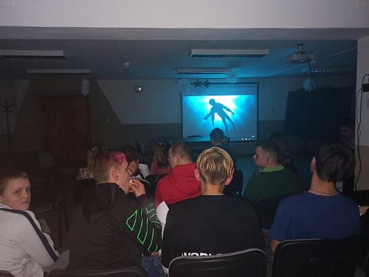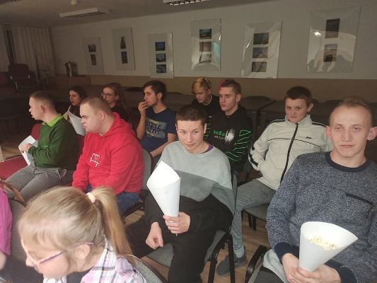 W zimowy czas na jeden wieczór sala konferencyjna w naszym Ośrodku zamieniła się w salę kinową gdzie wyświetlony został film pt: „Jack Mróz”, a czas projekcji upłynął w miłej i radosnej atmosferze. Wszyscy z zainteresowaniem oglądali kolejne sceny emitowanego filmu i zajadali smaczny popcorn. Głównym celem spotkania była nauka właściwego zachowania w miejscu publicznym takim jak kino, a także integracja wychowanków i kreatywne spędzanie czasu wolnego.