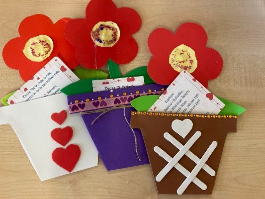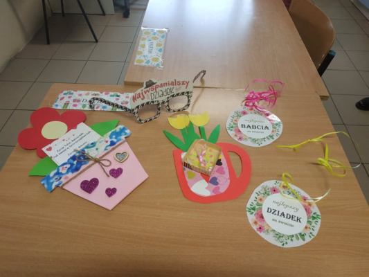 Dzień Babci i Dziadka to święta o charakterze wybitnie rodzinnym. Z tej okazji zazwyczaj u dziadków spotykają się zarówno dzieci, jak i wnuki. Tradycyjnie przynosi się drobne upominki, kupuje bukiety kwiatów, a najmłodsi tworzą wyjątkowe laurki. Ten wspólnie spędzony czas ma naprawdę ogromne znaczenie dla dziadków. Warto w tych wyjątkowych dniach pamiętać również o tym, aby szczerze podziękować im za pomoc, radę i wsparcie. Wdzięczność można wyrazić w wyjątkowy sposób i dlatego w naszej szkole odbyły się warsztaty, na których dzieci z klas młodszych przygotowywały upominki i życzenia dla babć i dziadków. Było trochę zabawy i dużo pracy. Uczestnicy udowodnili, że potrafią tworzyć piękne prace - doniczki z kwiatami oraz laurki czekają na wręczenie kochanym seniorom.