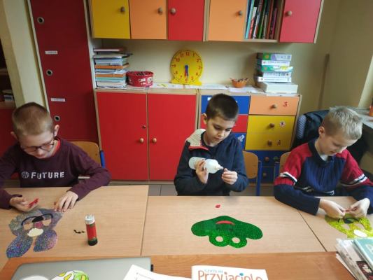29 stycznia uczniowie klas 1-3 uczestniczyli w warsztatach, których tematem przewodnim były maski karnawałowe. Uczestnicy otrzymali szablony masek oraz różne materiały plastyczne potrzebne do ich dekoracji. Przy ich użyciu stworzyli oryginalne maski. Podczas tworzenia masek panowała miła i przyjazna atmosfera. Uczniowie wymieniali się ciekawymi pomysłami i pomagali sobie. Na koniec zajęć każdy z uczestników zrobił sobie pamiątkowe zdjęcie z własnoręcznie wykonaną maską.