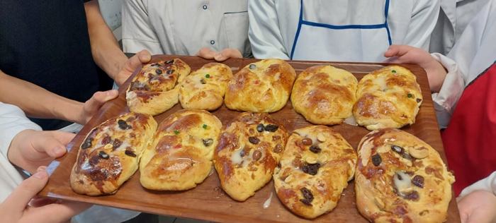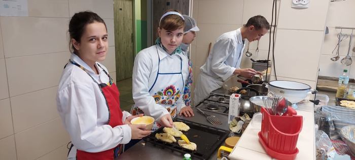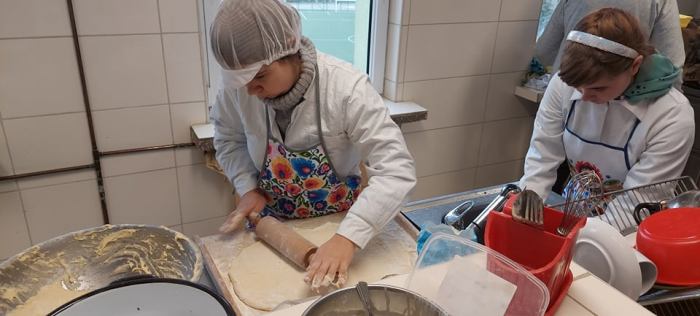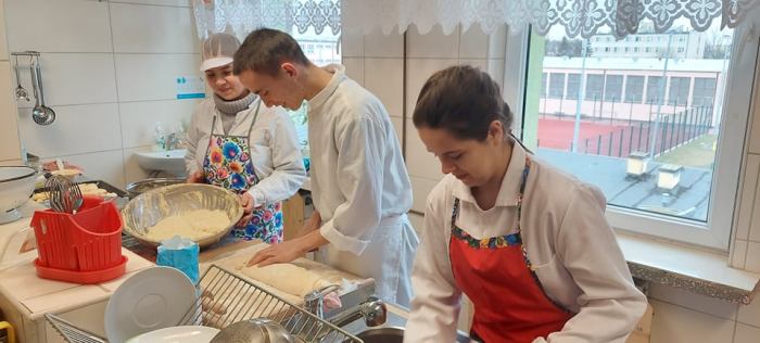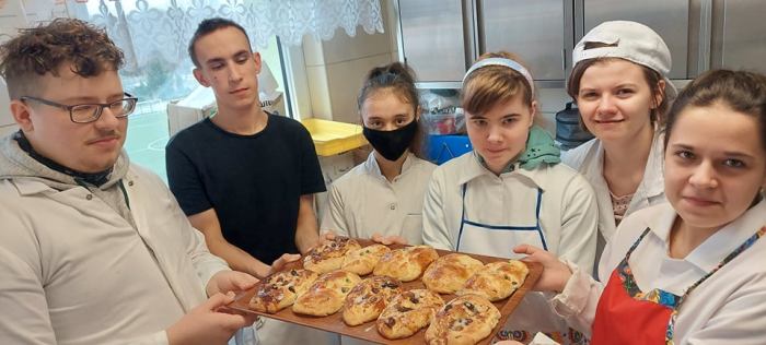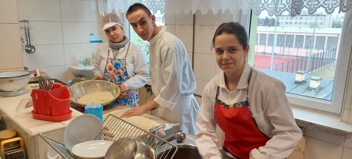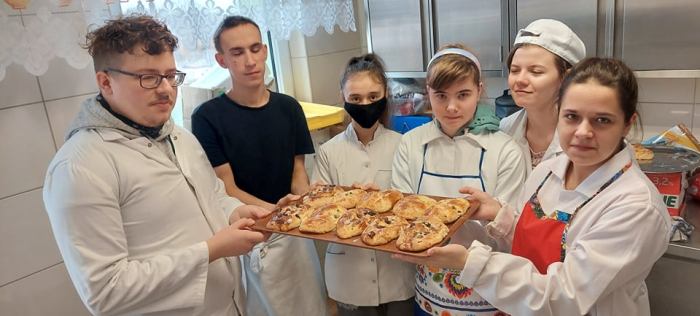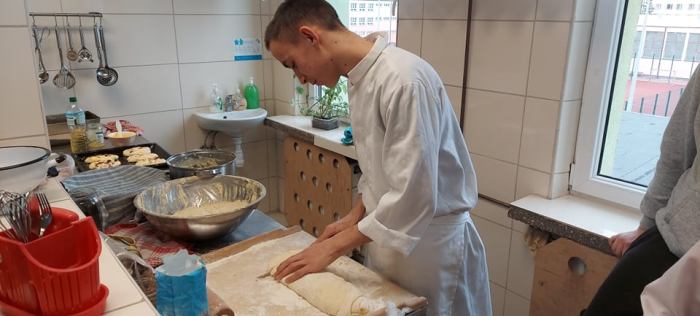 Lekkie jak chmurka, puszyste ze złotą chrupiącą skórką, roztaczające wokół siebie cudowny zapach...idealne ciasto drożdżowe. Takie oto ciasto zostało przygotowane podczas zajęć z pracowni gastronomicznej przez uczniów klasy III Kucharz Branżowej Szkoły I Stopnia. Uczniowie w tym dniu sporządzili różnego rodzaju, przepyszne drożdżówki według podanej receptury gastronomicznej. Wśród wypieków znalazły się drożdżówki z masą budyniową, marmoladą oraz z masą makową i bakaliami. Wszyscy uczniowie świetnie ze sobą współpracowali oraz pomagali sobie wzajemnie .Na koniec po przygotowaniu drożdżówek, pozostało już tylko najprzyjemniejsze-czyli wspólna degustacja przy herbacie a unoszący się zapach świeżo pieczonych drożdżówek roznosił się po całej szkole i przyciągał osoby chętne do spróbowania takich pyszności.