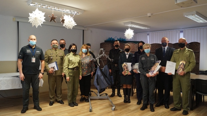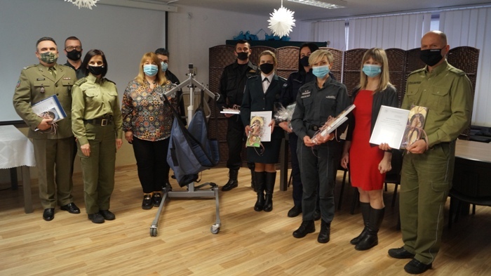 Dzisiejszy dzień w naszym ośrodku był wyjątkowy za sprawą wspaniałych gości, przedstawicieli służb mundurowych powiatu hrubieszowskiego. W odpowiedzi na nasze potrzeby funkcjonariusze i pracownicy Organizacji Związkowej NSZZ FiPW w Hrubieszowie, Zakładu Karnego w Hrubieszowie, Komendy Powiatowej Policji w Hrubieszowie, Komendy Powiatowej Państwowej Straży Pożarnej w Hrubieszowie, Służby Celno - Skarbowej oddział w Hrubieszowie, Służby Celno - Skarbowej oddział w Zosinie, Służby Celno - Skarbowej oddział w Dołhobyczowie, Placówki Straży Granicznej w Hrubieszowie oraz żołnierze 2 Hrubieszowskiego Pułku Rozpoznawczego zebrali fundusze na zakup sprzętu rehabilitacyjnego oraz przekazali Ruchomy podnośnik dla osób niepełnosprawnych. Wszystkim darczyńcom, ludziom o wielkiej wrażliwości i hojności składamy najserdeczniejsze podziękowania. Jesteśmy szczęśliwi, że dzięki uzyskanemu wsparciu otrzymaliśmy tak bardzo potrzebny podnośnik oraz możemy zakupić sprzęt do rehabilitacji naszych podopiecznych. Należy dodać, że w ramach współpracy niejednokrotnie otrzymywaliśmy pomoc od pracowników wyżej wymienionych placówek, jednocześnie należy podkreślić, że tegoroczna akcja jest pierwszym zintegrowanym działaniem wszystkich służb.
