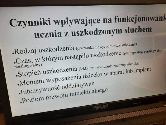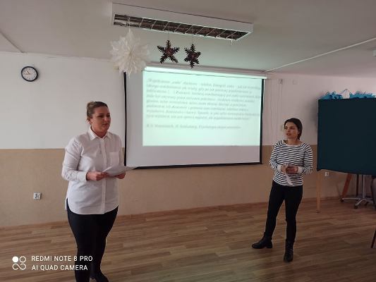 W dniu 08.02.2022 r. odbyło się wewnątrzszkolne szkolenie rady pedagogicznej pn. „Praca z uczniem głuchym i słabosłyszącym”. Celem spotkania było omówienie podstawowych definicji tj.: głuchota, niedosłuch, surdopedagogika, a także zaprezentowanie metod i form postępowania z dzieckiem z zaburzeniami słuchu. Podczas szkolenia scharakteryzowane zostały również metody porozumiewania się osób niesłyszących - metoda migowa, daktylografia, fonogestyka, mowa kombinowana, metoda totalnej komunikacji, metoda ustna. Uczestnikom spotkania przybliżone zostały także ćwiczenia rehabilitacyjne, które wykorzystywane są podczas pracy z osobami z zaburzeniami słuchu. Ćwiczenia te to między innymi: ćwiczenia oddechowe, ćwiczenia słuchowe, ćwiczenia usprawniające pracę narządów artykulacyjnych, ćwiczenia fonacyjno - głosowe, ćwiczenia rozwijające rozumienie mowy, ćwiczenia rozwijające mowę czynną, ćwiczenia artykulacyjne.