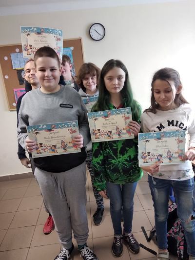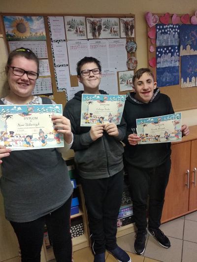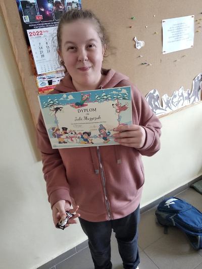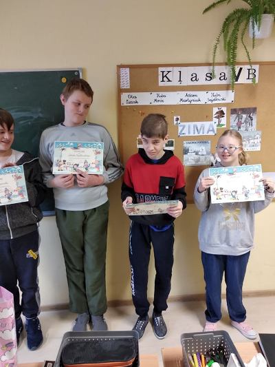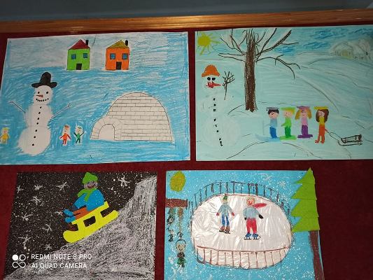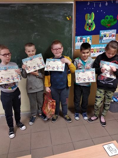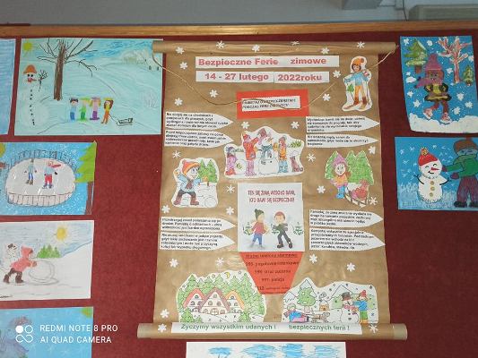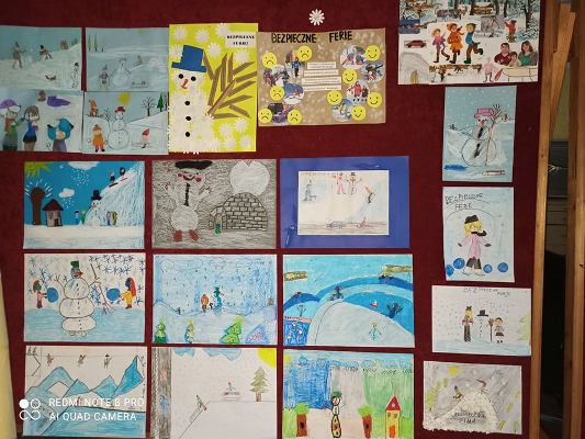 Nasi uczniowie doskonale wiedzą jak należy zadbać o swoje bezpieczeństwo również podczas zimowego wypoczynku. Licznie uczestniczyli w konkursie plastycznym "Bezpieczne ferie". Prace zostały przygotowane w pięknej zimowej kolorystyce oraz pełne drobnych szczegółów. Na konkurs trafiły plakaty z dobrymi radami oraz ilustracje zimowych zabaw. Nagrodami, wyróżnieni zostali uczniowie klas: I, I-II, V szkoły podstawowej. Wszyscy uczestnicy otrzymali pamiątkowe dyplomy.